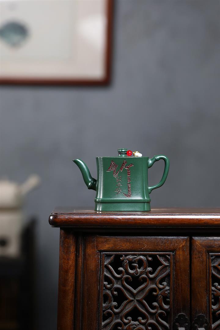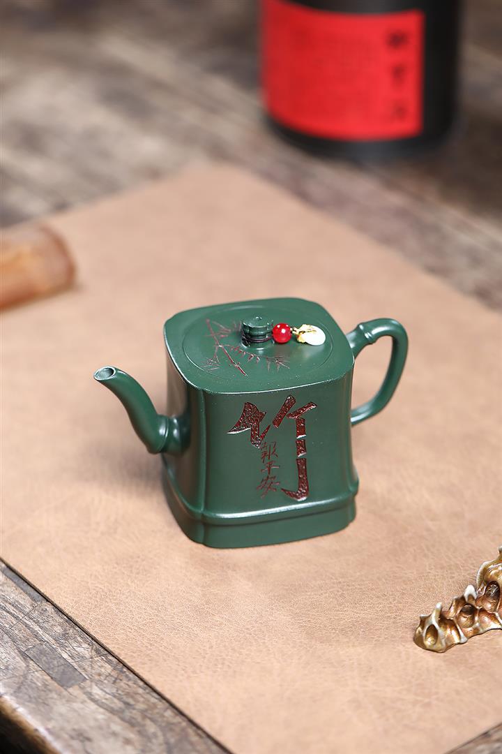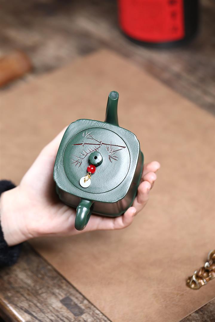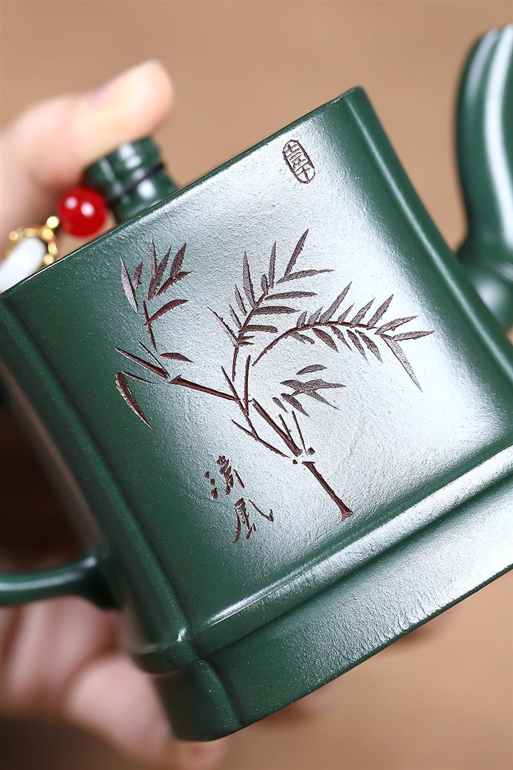 220cc原礦綠泥四方竹節泡茶壺POT9159