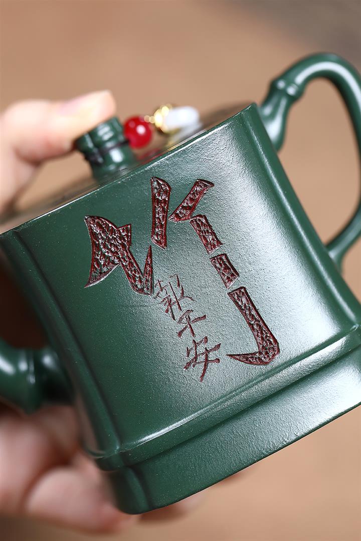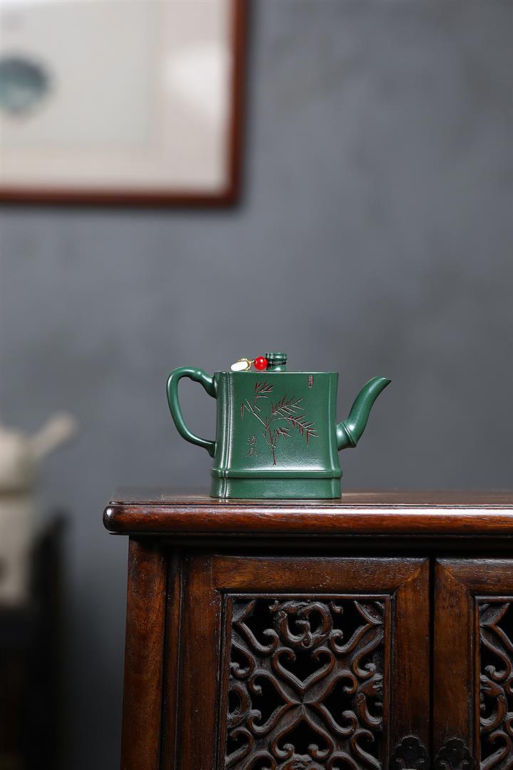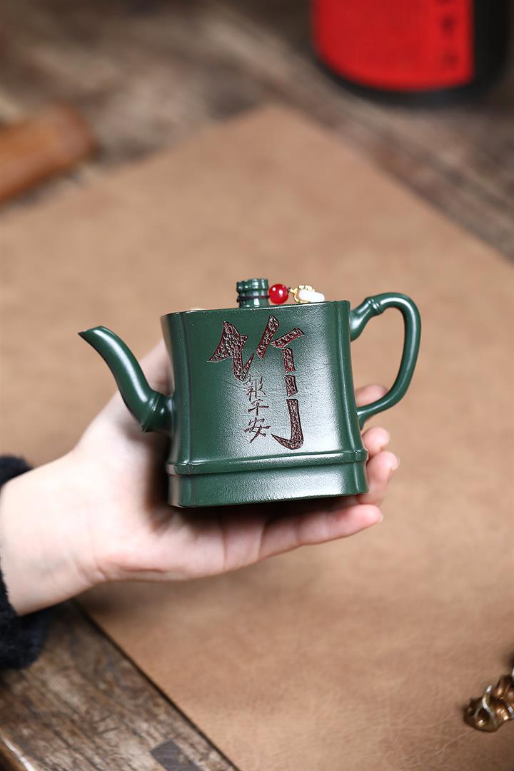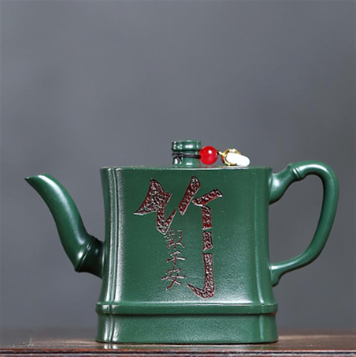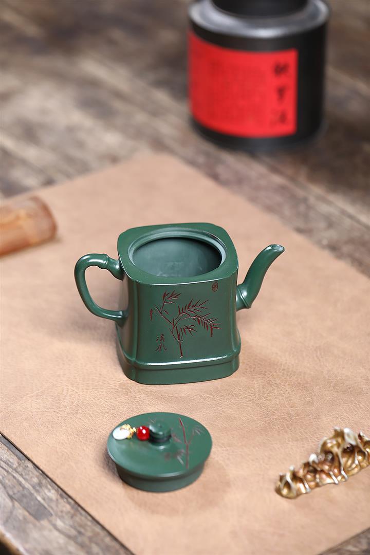 220cc原礦綠泥四方竹節泡茶壺POT9159