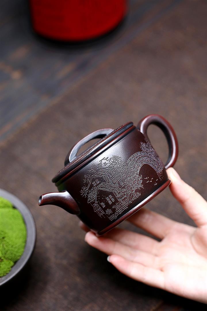 【作品介紹】此款壺形線條流暢,壺把,壺嘴,壺身壹氣呵成栩栩如生,是收藏把玩的好壺,泥料色澤古樸典雅,日久使用,漸露鋒芒,養成變化快,溫潤莊重,用其泡茶,使用的年代久,壺身就溫潤,泡出來的茶湯也就醇郁芳馨。