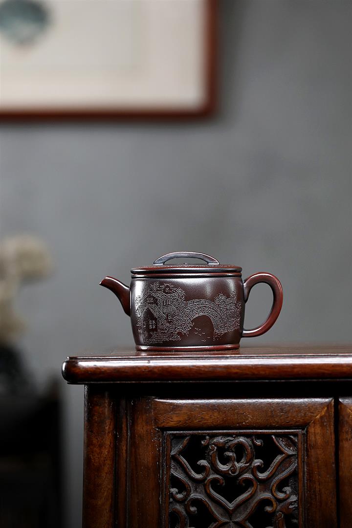 原礦高溫段泥手工刻繪高竹節茶壺POT6784