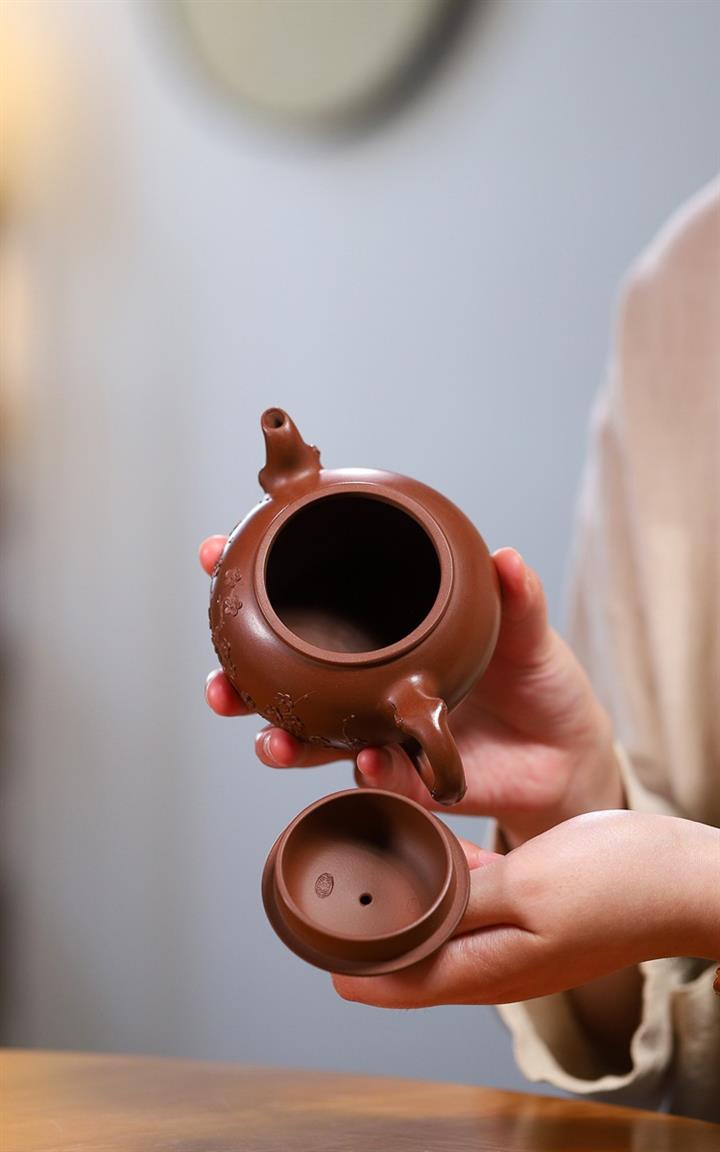 【泥料特點】砂土氣重,似淳實農民,日久使用,漸露鋒芒,養成變化,溫潤莊重。紫砂是壹種雙重氣孔結構的多孔性材質,氣孔微細,密度高。用紫砂壺沏茶,不失原味,且香不渙散,得茶之真香真味。紫砂使用越久,壺身色澤越發光亮照人,氣韻溫雅。紫砂壺長久使用器身會因撫摸擦拭,變得越發溫潤光澤。