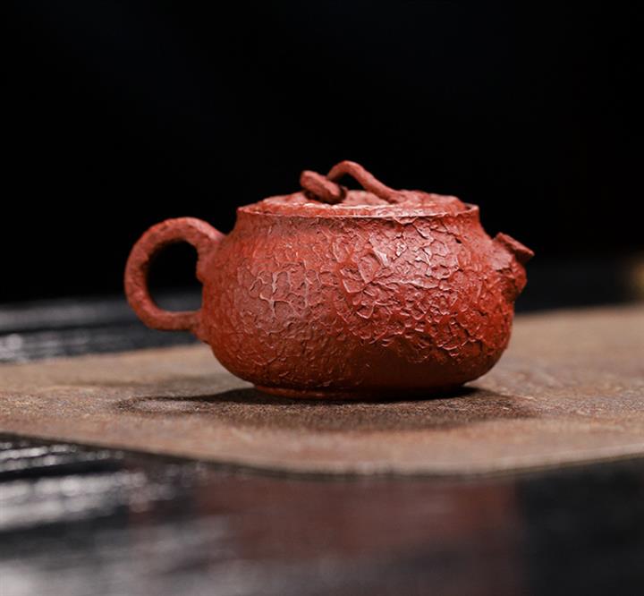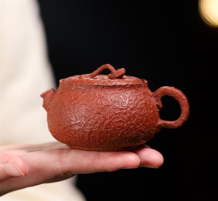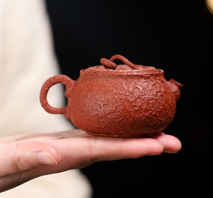 90cc原礦朱泥皺皮小醜扁郡茶壺POT9175