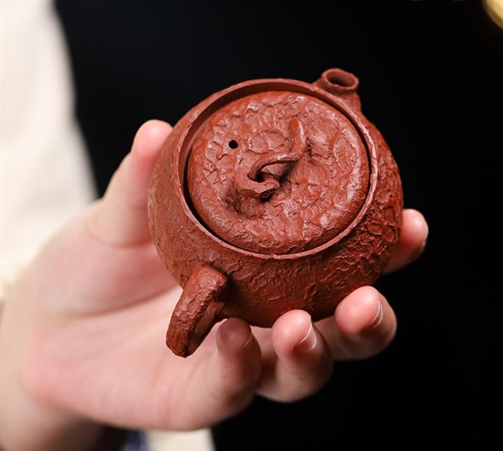 240cc原礦紅皮龍泥繪高德鐘茶壺POT8957