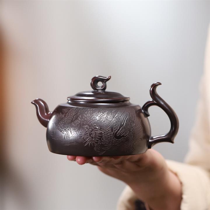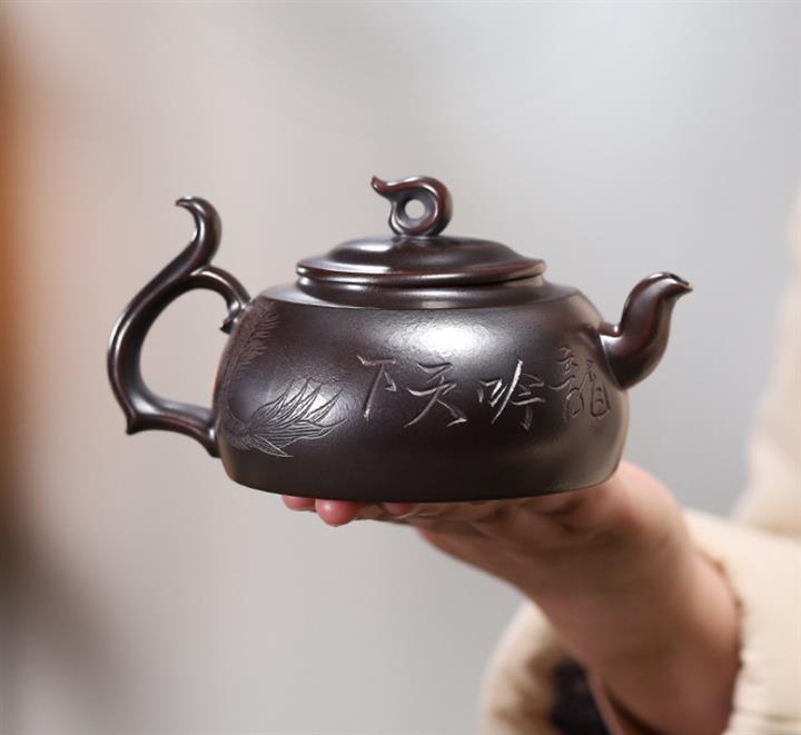 原礦老紫泥名家手工太極竹簡壺POT6550