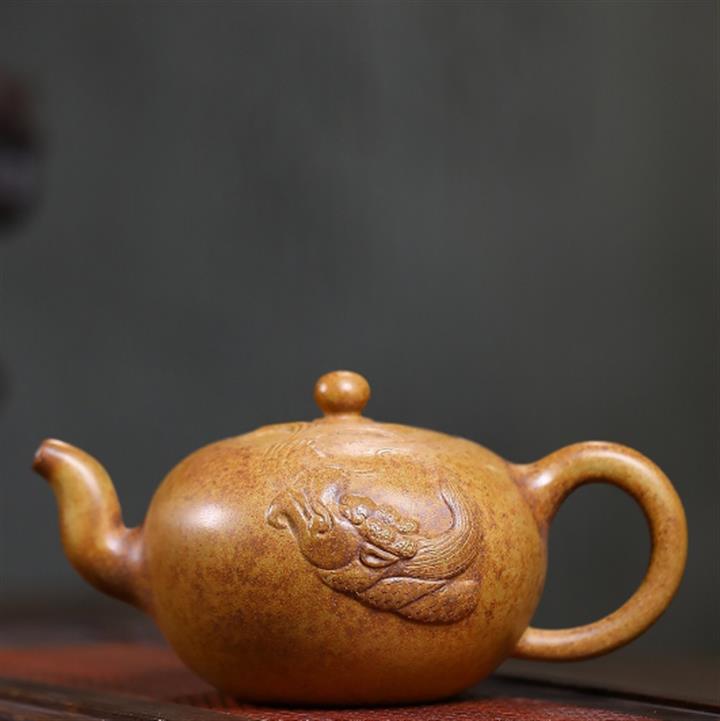 350cc龍窯高溫柴燒龍骨金砂提梁泡茶壺POT9503