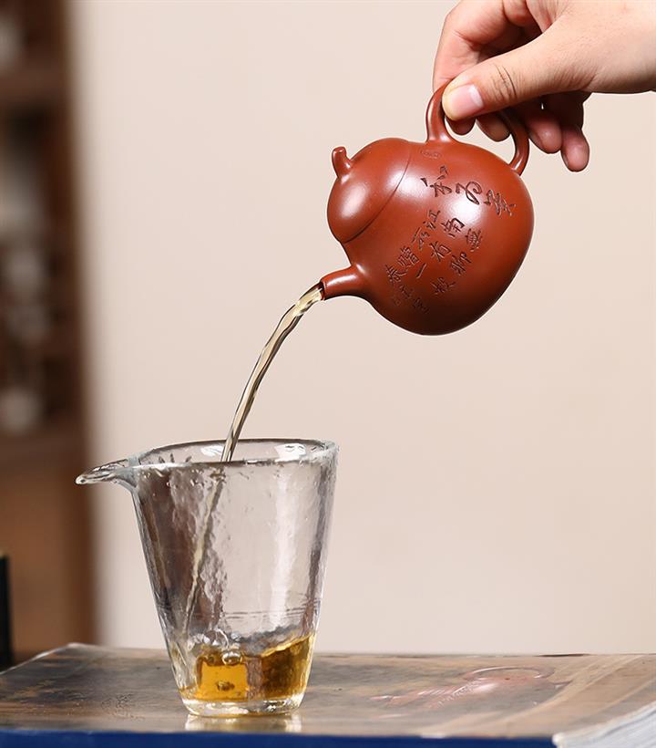 【泥料特點】砂土氣重,似淳實農民,日久使用,漸露鋒芒,養成變化,溫潤莊重。紫砂是壹種雙重氣孔結構的多孔性材質,氣孔微細,密度高。用紫砂壺沏茶,不失原味,且香不渙散,得茶之真香真味。紫砂使用越久,壺身色澤越發光亮照人,氣韻溫雅。紫砂壺長久使用器身會因撫摸擦拭,變得越發溫潤光澤。