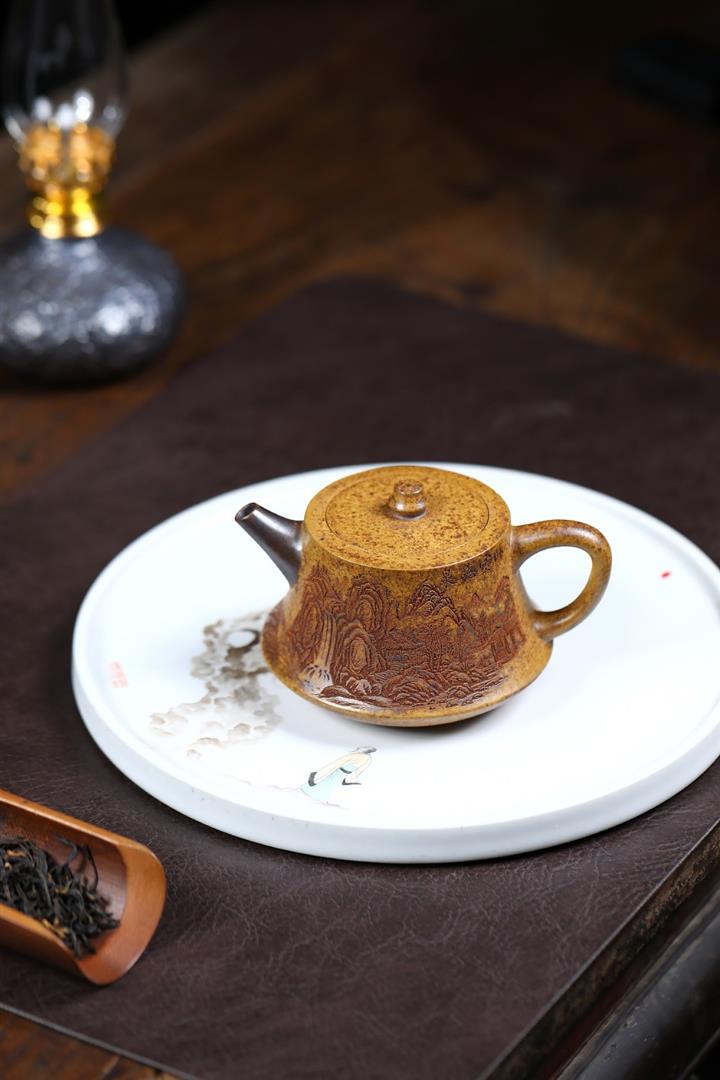 【作品介紹】此款壺形線條流暢,壺把,壺嘴,壺身壹氣呵成栩栩如生,是收藏把玩的好壺,泥料色澤古樸典雅,日久使用,漸露鋒芒,養成變化快,溫潤莊重,用其泡茶,使用的年代久,壺身就溫潤,泡出來的茶湯也就醇郁芳馨。