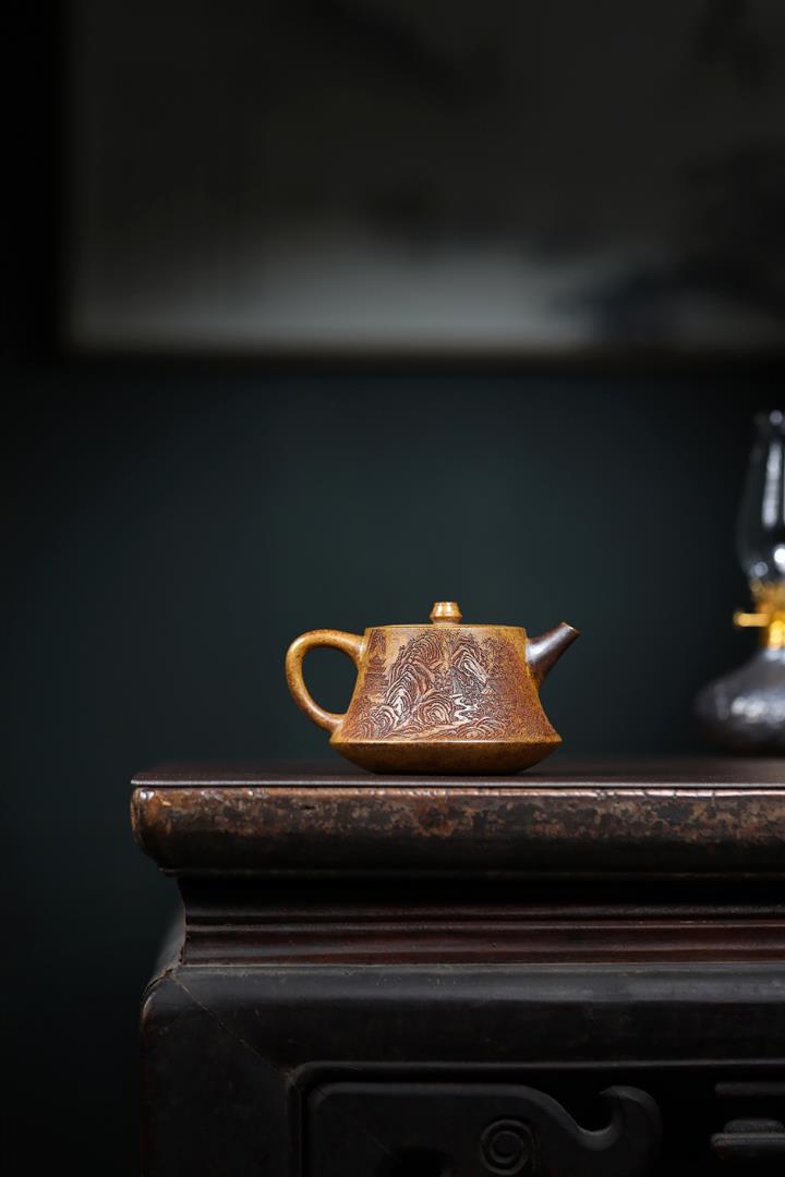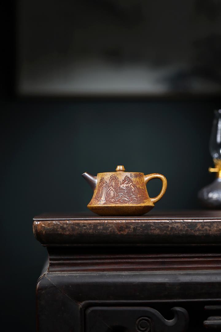200cc原礦黃金段泥高溫柴燒金砂石趣壺POT8319
