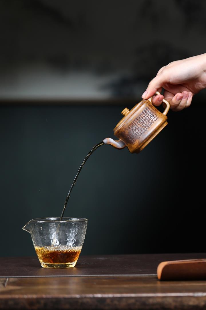 【泥料特點】砂土氣重,似淳實農民,日久使用,漸露鋒芒,養成變化,溫潤莊重。紫砂是壹種雙重氣孔結構的多孔性材質,氣孔微細,密度高。用紫砂壺沏茶,不失原味,且香不渙散,得茶之真香真味。紫砂使用越久,壺身色澤越發光亮照人,氣韻溫雅。紫砂壺長久使用器身會因撫摸擦拭,變得越發溫潤光澤。