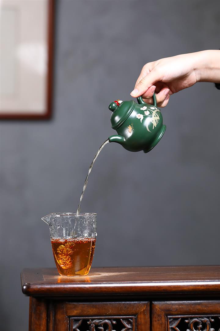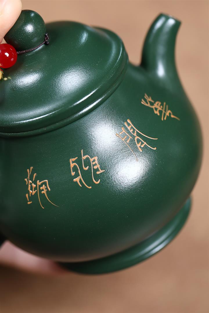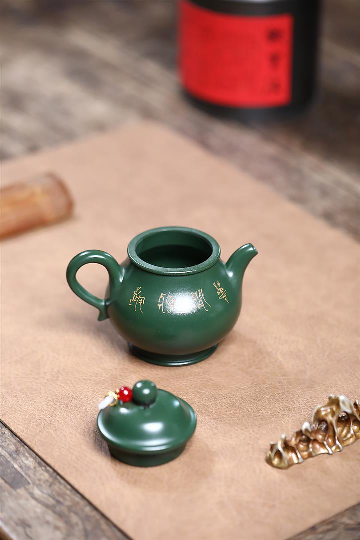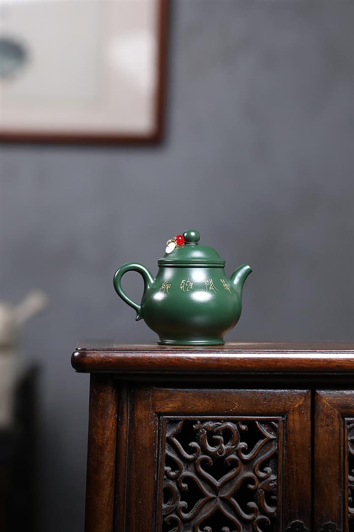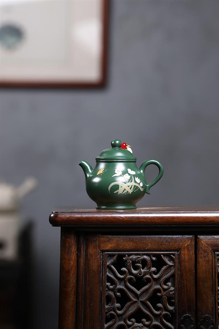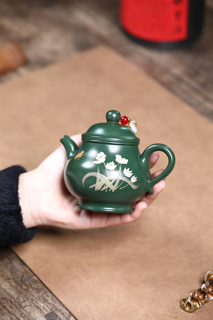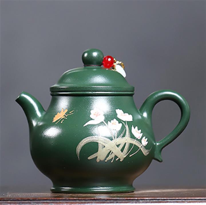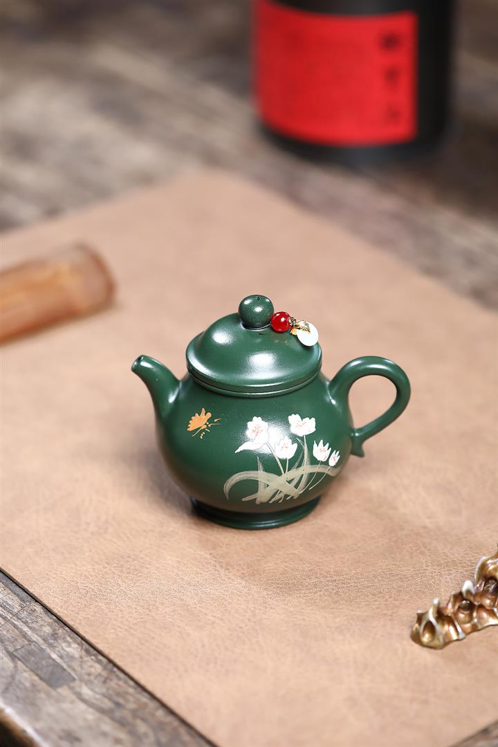 180cc原礦翡翠綠泥蝶戀花潘壺茶壺POT9245