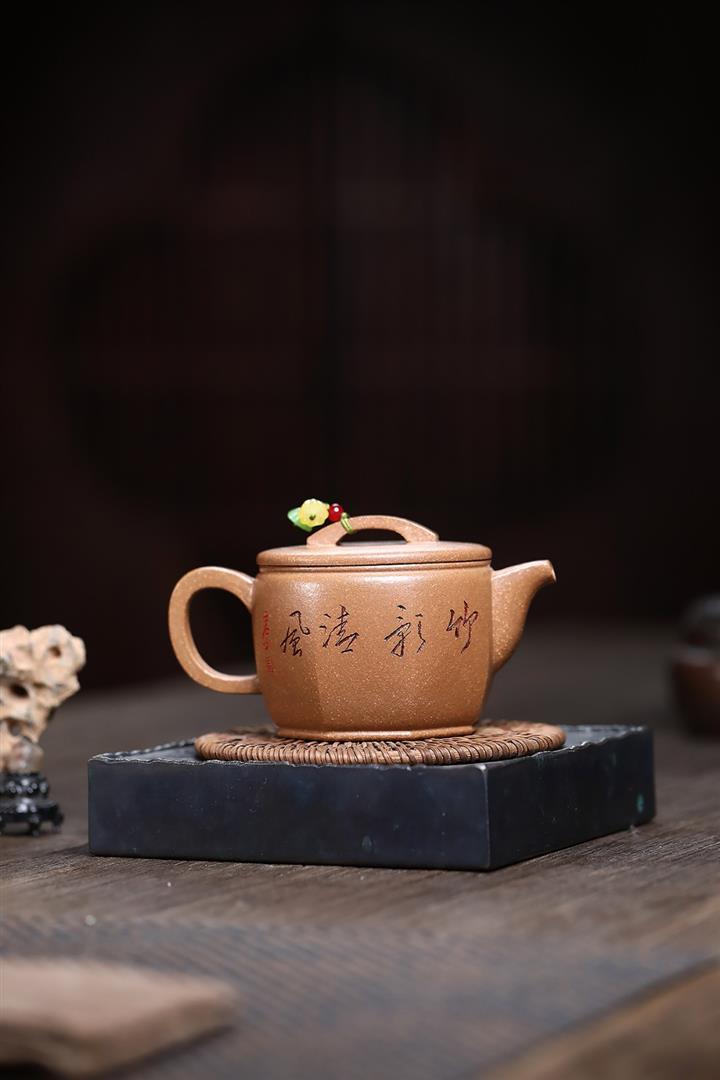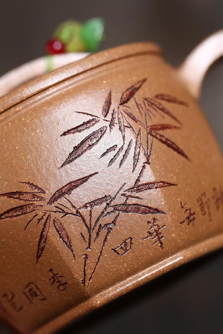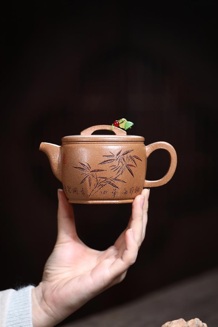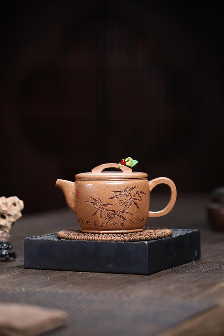 250cc原礦金降坡壹方竹影漢瓦茶壺POT9271