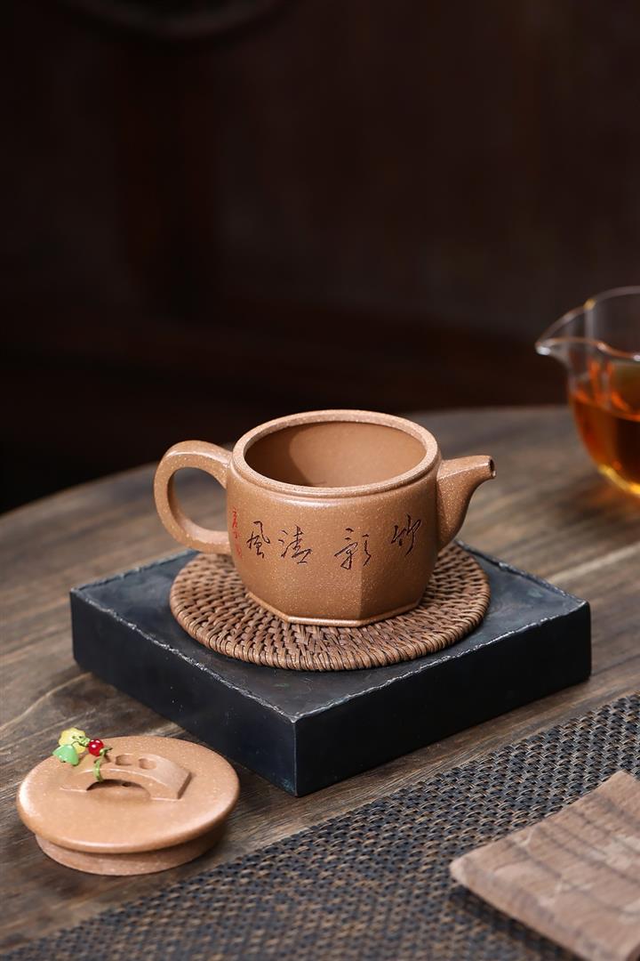 【泥料特點】砂土氣重,似淳實農民,日久使用,漸露鋒芒,養成變化,溫潤莊重。紫砂是壹種雙重氣孔結構的多孔性材質,氣孔微細,密度高。用紫砂壺沏茶,不失原味,且香不渙散,得茶之真香真味。紫砂使用越久,壺身色澤越發光亮照人,氣韻溫雅。紫砂壺長久使用器身會因撫摸擦拭,變得越發溫潤光澤。