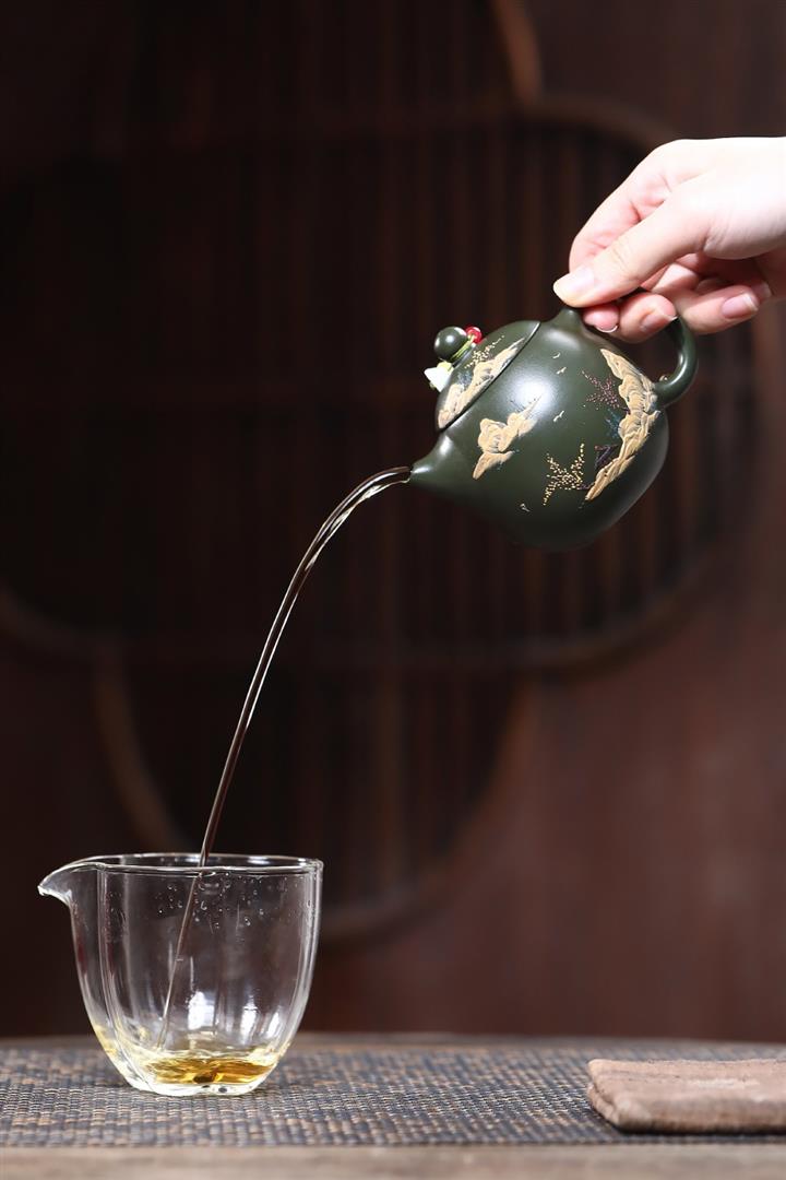 【泥料特點】砂土氣重,似淳實農民,日久使用,漸露鋒芒,養成變化,溫潤莊重。紫砂是壹種雙重氣孔結構的多孔性材質,氣孔微細,密度高。用紫砂壺沏茶,不失原味,且香不渙散,得茶之真香真味。紫砂使用越久,壺身色澤越發光亮照人,氣韻溫雅。紫砂壺長久使用器身會因撫摸擦拭,變得越發溫潤光澤。