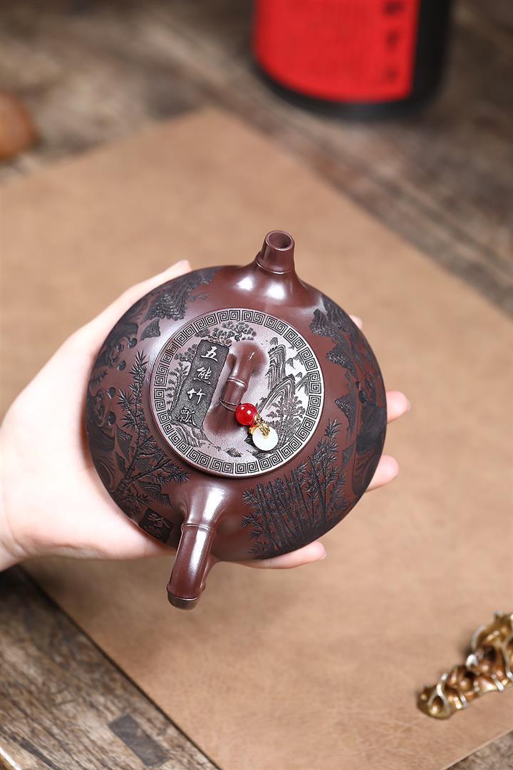 原礦高溫段泥手工刻繪高竹節茶壺POT6784