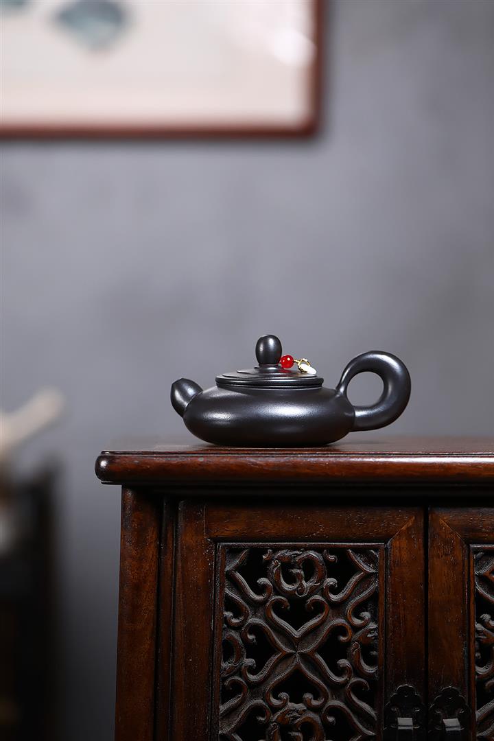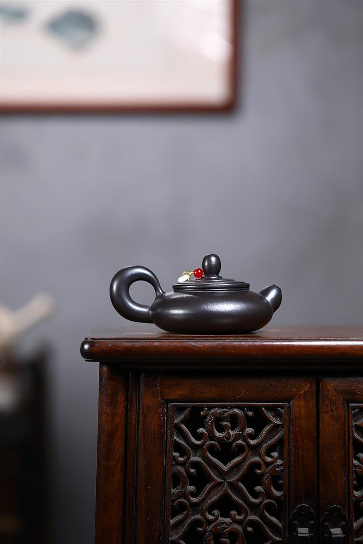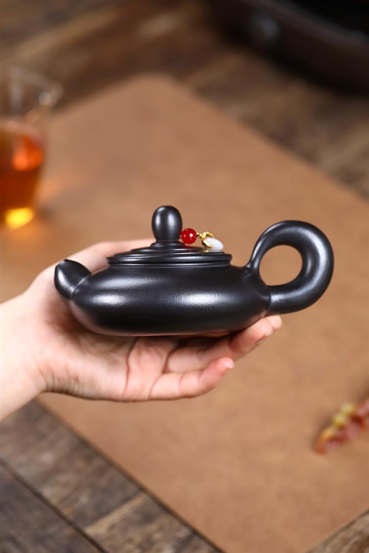 180cc原礦玄鐵石黃道洪扁燈茶壺POT9277