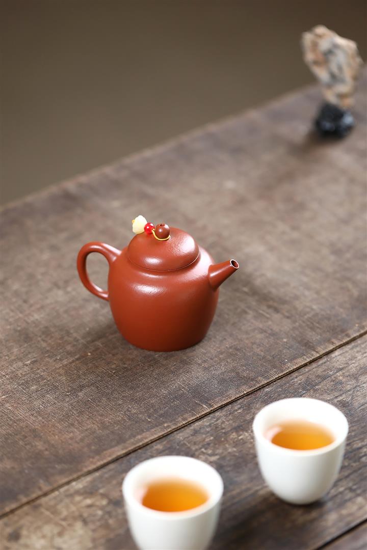 【泥料特點】砂土氣重,似淳實農民,日久使用,漸露鋒芒,養成變化,溫潤莊重。紫砂是壹種雙重氣孔結構的多孔性材質,氣孔微細,密度高。用紫砂壺沏茶,不失原味,且香不渙散,得茶之真香真味。紫砂使用越久,壺身色澤越發光亮照人,氣韻溫雅。紫砂壺長久使用器身會因撫摸擦拭,變得越發溫潤光澤。