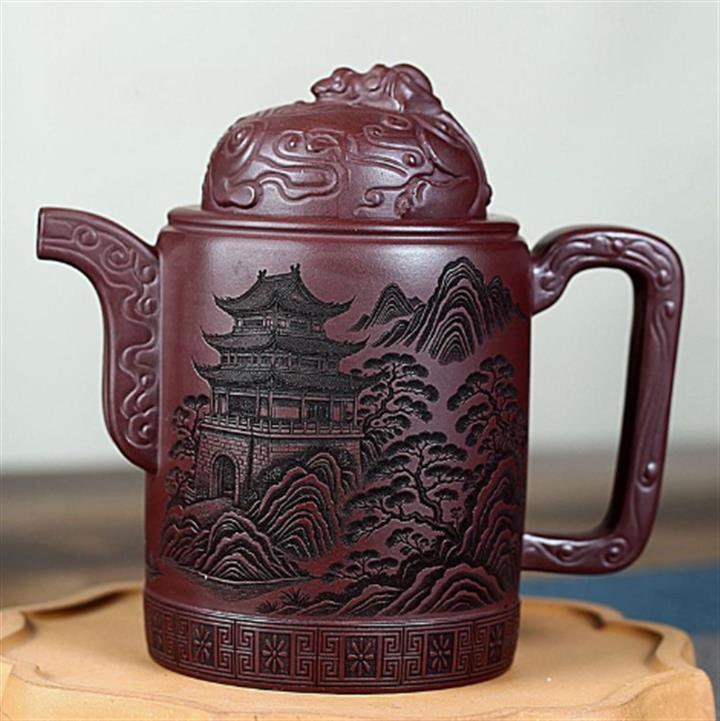 400cc原礦紫泥暮雨山庭龍璽汲直泡茶壺POT9821