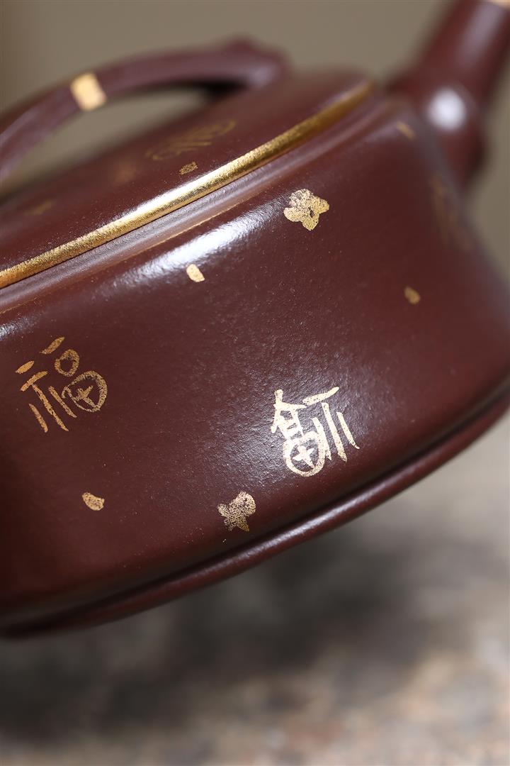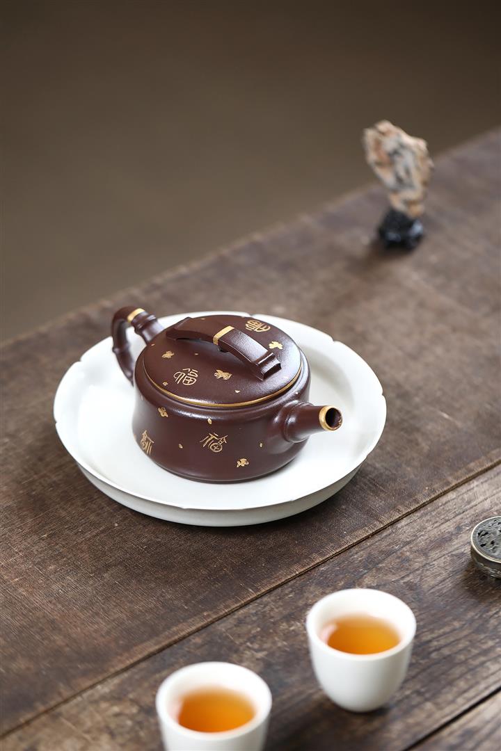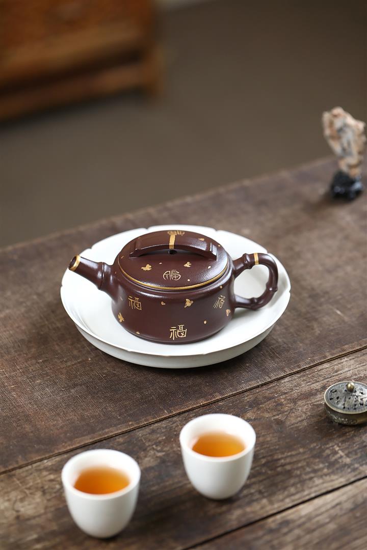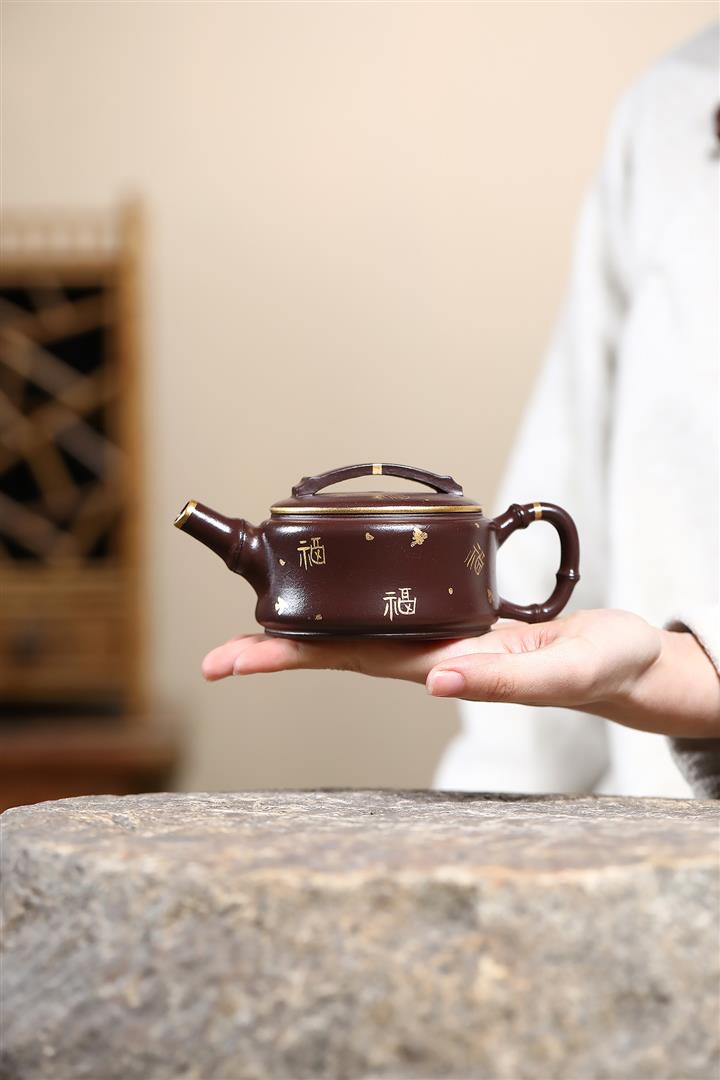190cc原礦紫泥描金竹節漢瓦壹壺兩杯茶壺POT9286