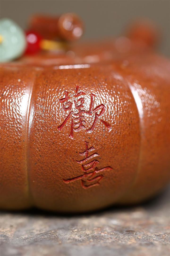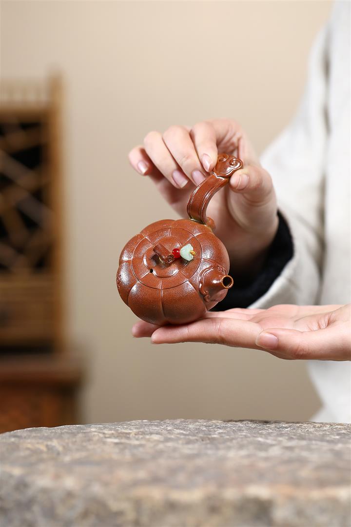 【泥料特點】砂土氣重,似淳實農民,日久使用,漸露鋒芒,養成變化,溫潤莊重。紫砂是壹種雙重氣孔結構的多孔性材質,氣孔微細,密度高。用紫砂壺沏茶,不失原味,且香不渙散,得茶之真香真味。紫砂使用越久,壺身色澤越發光亮照人,氣韻溫雅。紫砂壺長久使用器身會因撫摸擦拭,變得越發溫潤光澤。