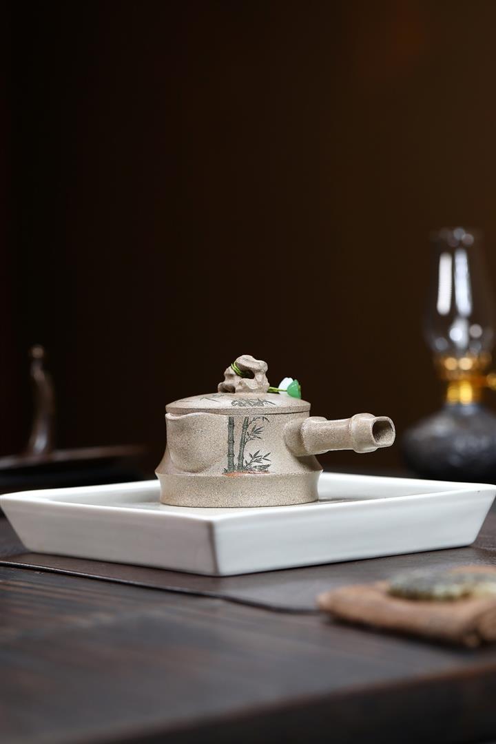 【作品介紹】此款壺形線條流暢,壺把,壺嘴,壺身壹氣呵成栩栩如生,是收藏把玩的好壺,泥料色澤古樸典雅,日久使用,漸露鋒芒,養成變化快,溫潤莊重,用其泡茶,使用的年代久,壺身就溫潤,泡出來的茶湯也就醇郁芳馨。
