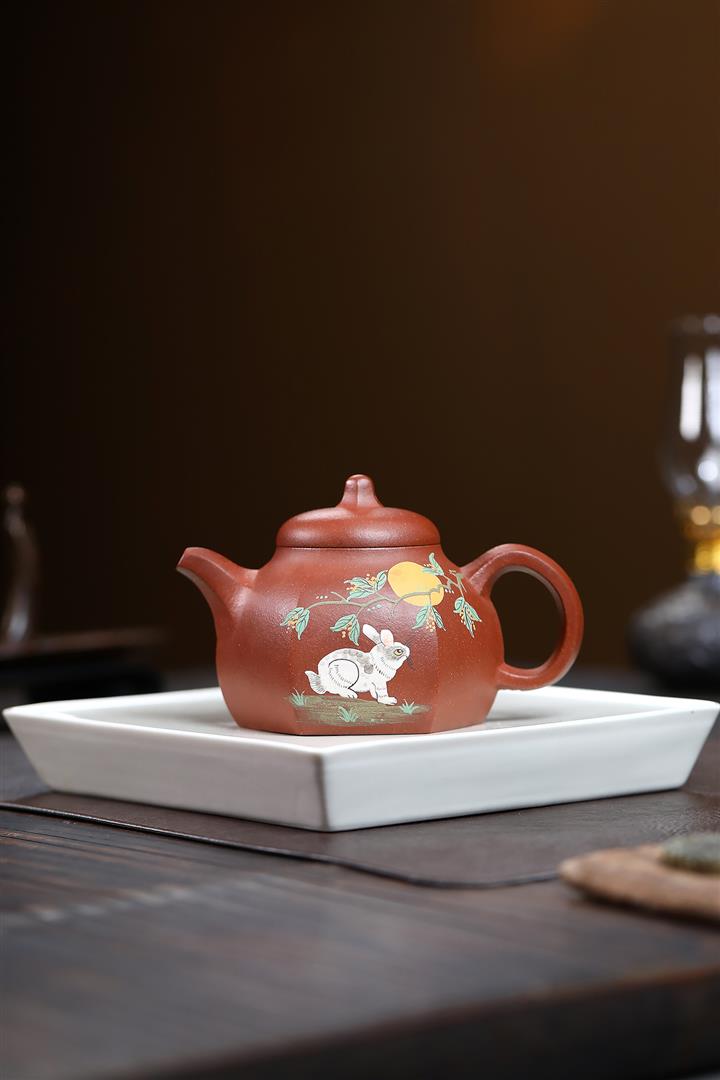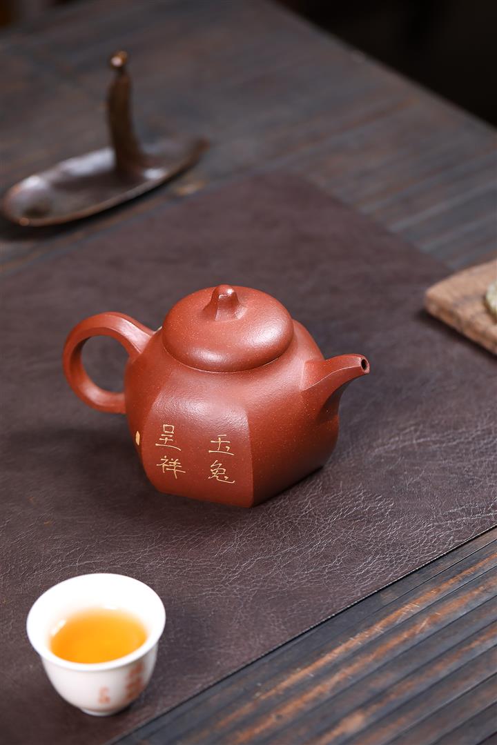 280cc原礦紅降坡六方攬月茶壺POT9297