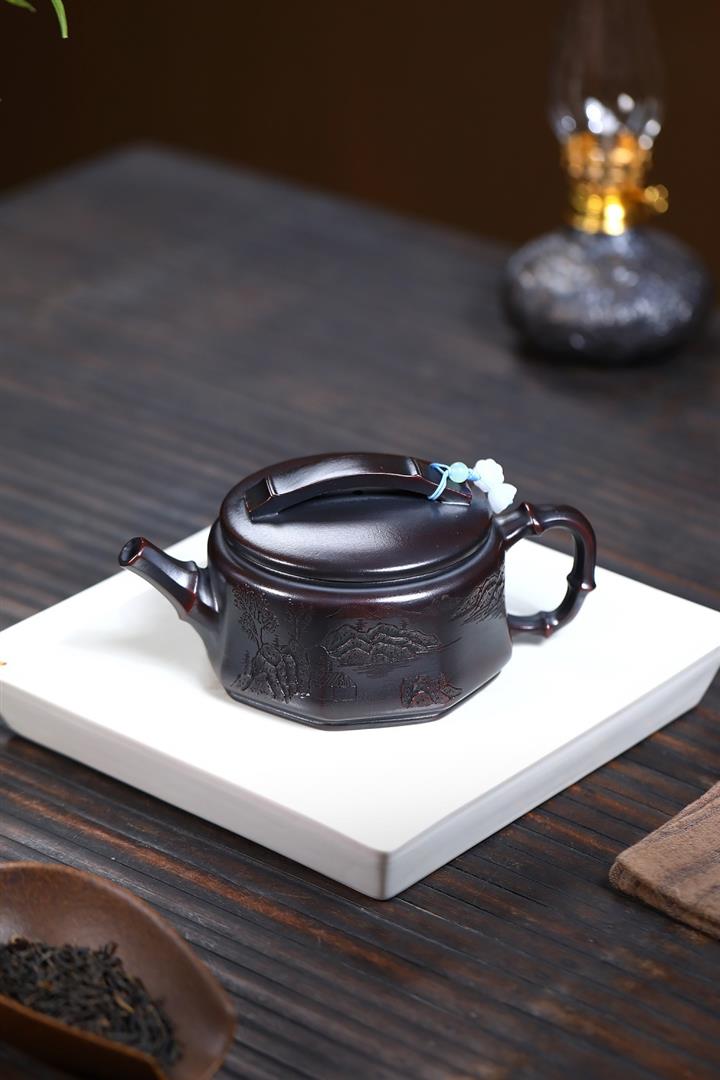 200cc原礦降坡泥方器刻繪茶壺POT8598