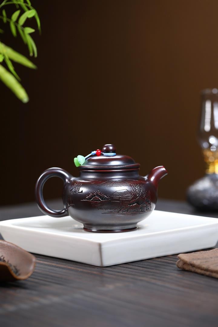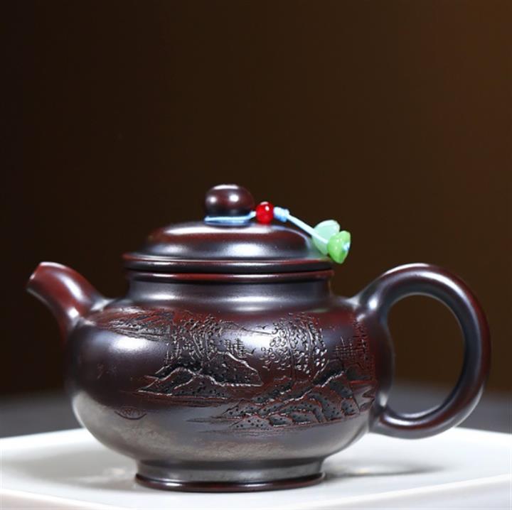 340cc原礦古銅烏泥鐵骨觀山掇只茶壺POT9325