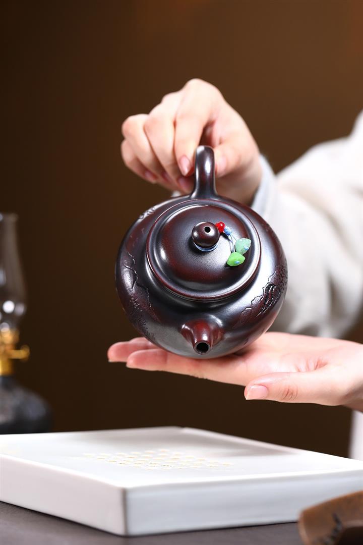 戌·紫玉金砂瑞獸蓮座紫砂壺POT6250