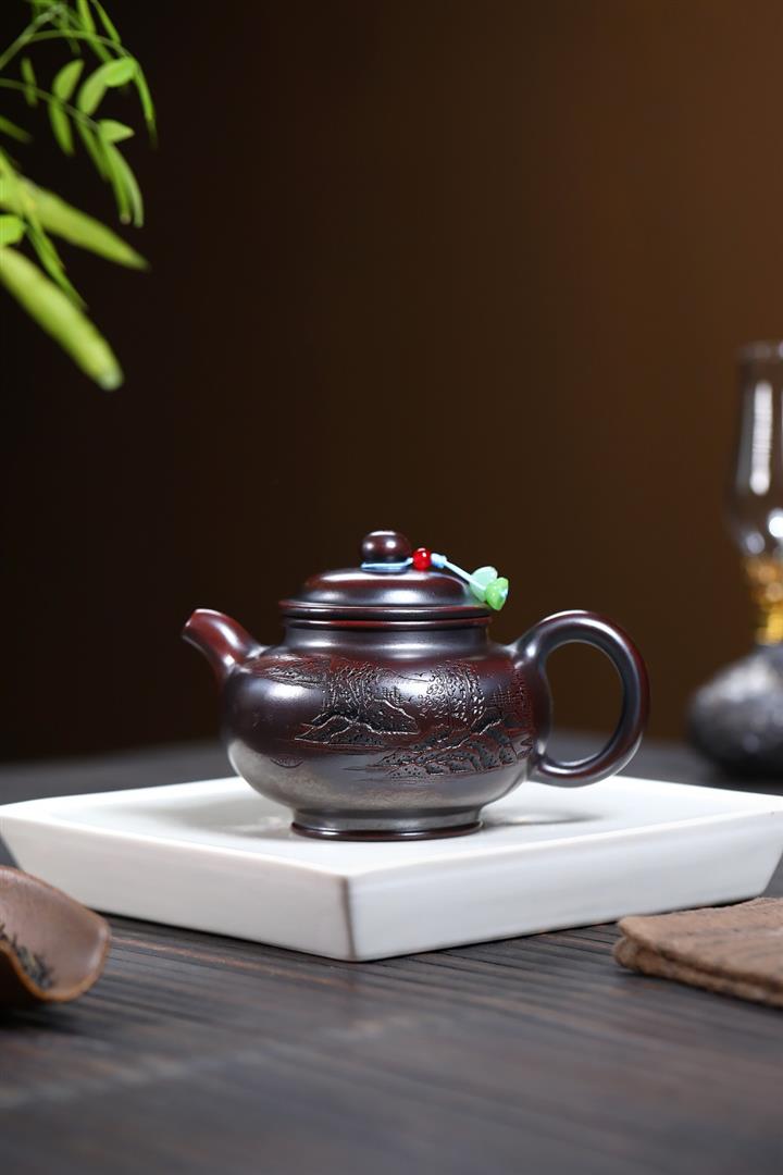 【作品介紹】此款壺形線條流暢,壺把,壺嘴,壺身壹氣呵成栩栩如生,是收藏把玩的好壺,泥料色澤古樸典雅,日久使用,漸露鋒芒,養成變化快,溫潤莊重,用其泡茶,使用的年代久,壺身就溫潤,泡出來的茶湯也就醇郁芳馨。