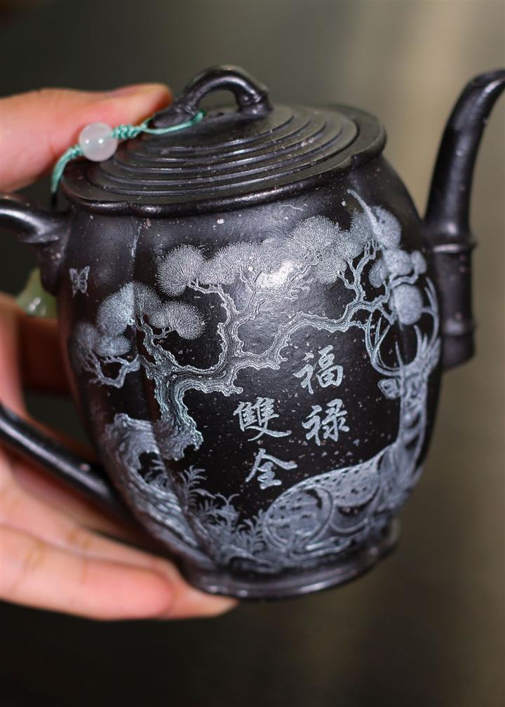 310cc原礦雪花泥福祿雙全泡茶壺POT9359