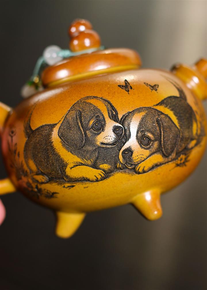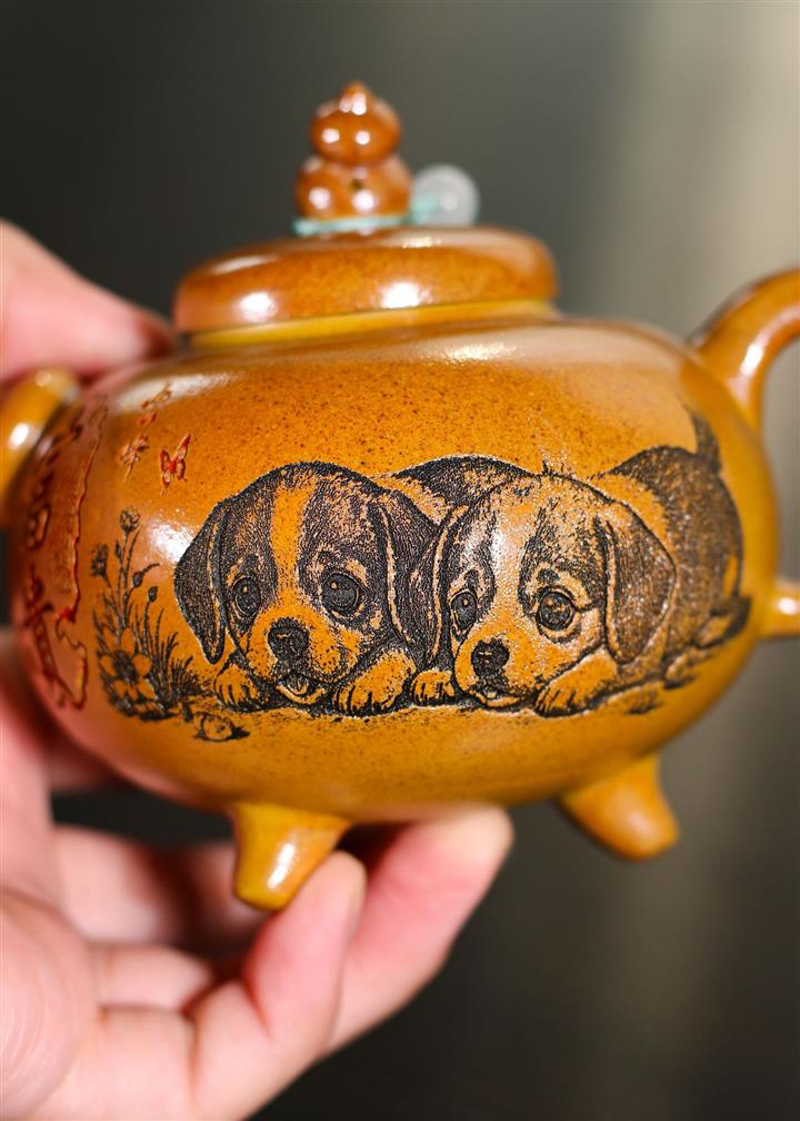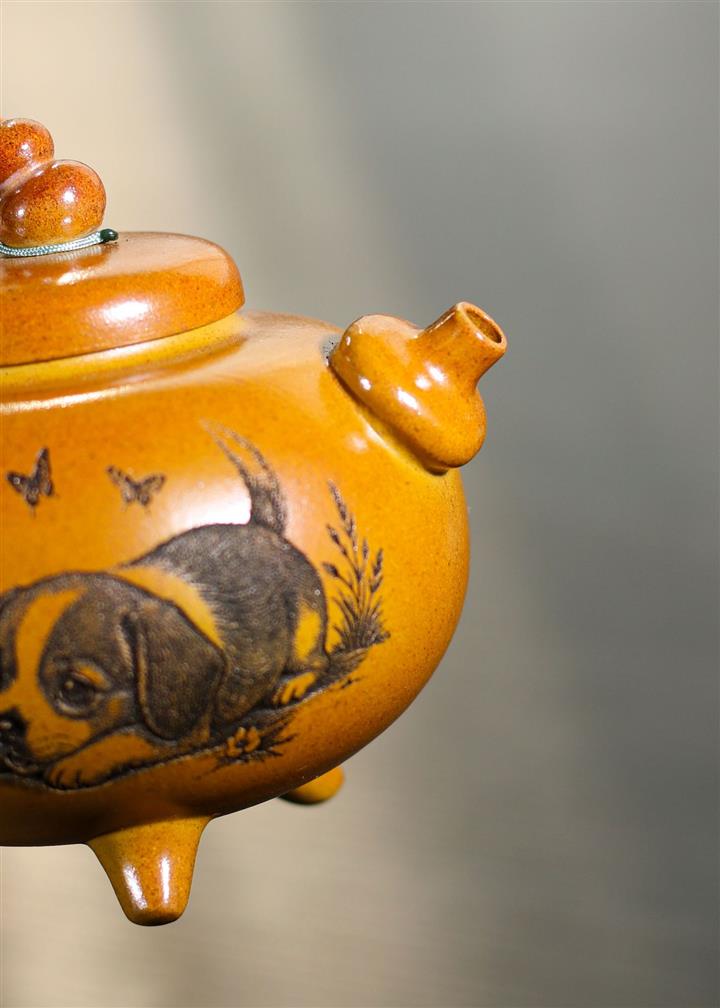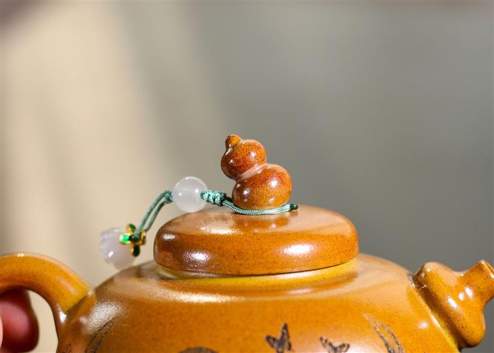 【泥料特點】砂土氣重,似淳實農民,日久使用,漸露鋒芒,養成變化,溫潤莊重。紫砂是壹種雙重氣孔結構的多孔性材質,氣孔微細,密度高。用紫砂壺沏茶,不失原味,且香不渙散,得茶之真香真味。紫砂使用越久,壺身色澤越發光亮照人,氣韻溫雅。紫砂壺長久使用器身會因撫摸擦拭,變得越發溫潤光澤。