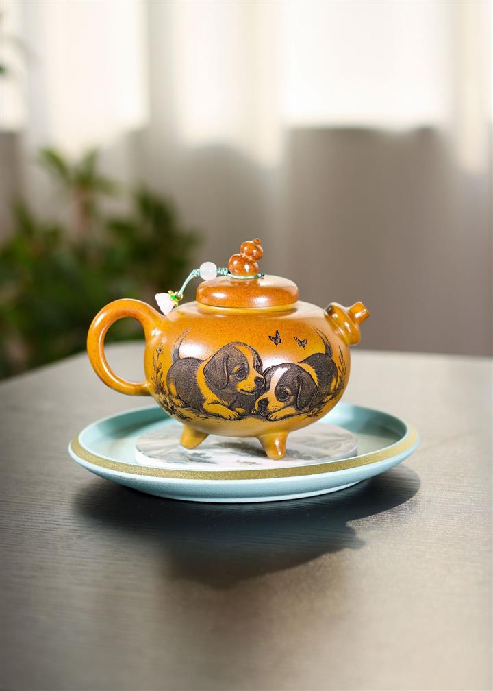 250cc原礦黃金段泥茍富貴葫蘆泡茶壺POT9360