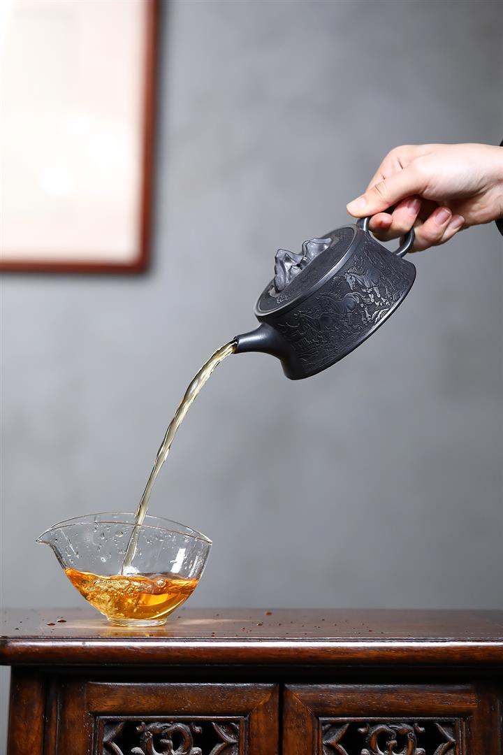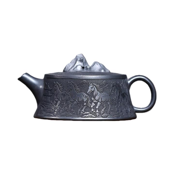 280cc原礦玄鐵石黃駿馬柱礎泡茶壺POT9361