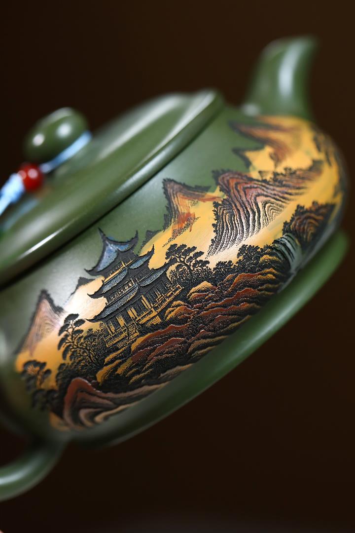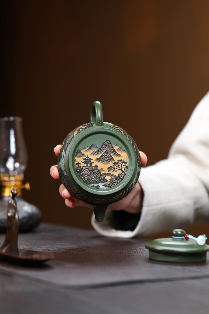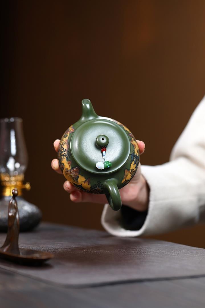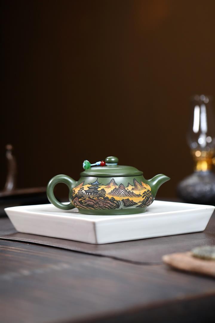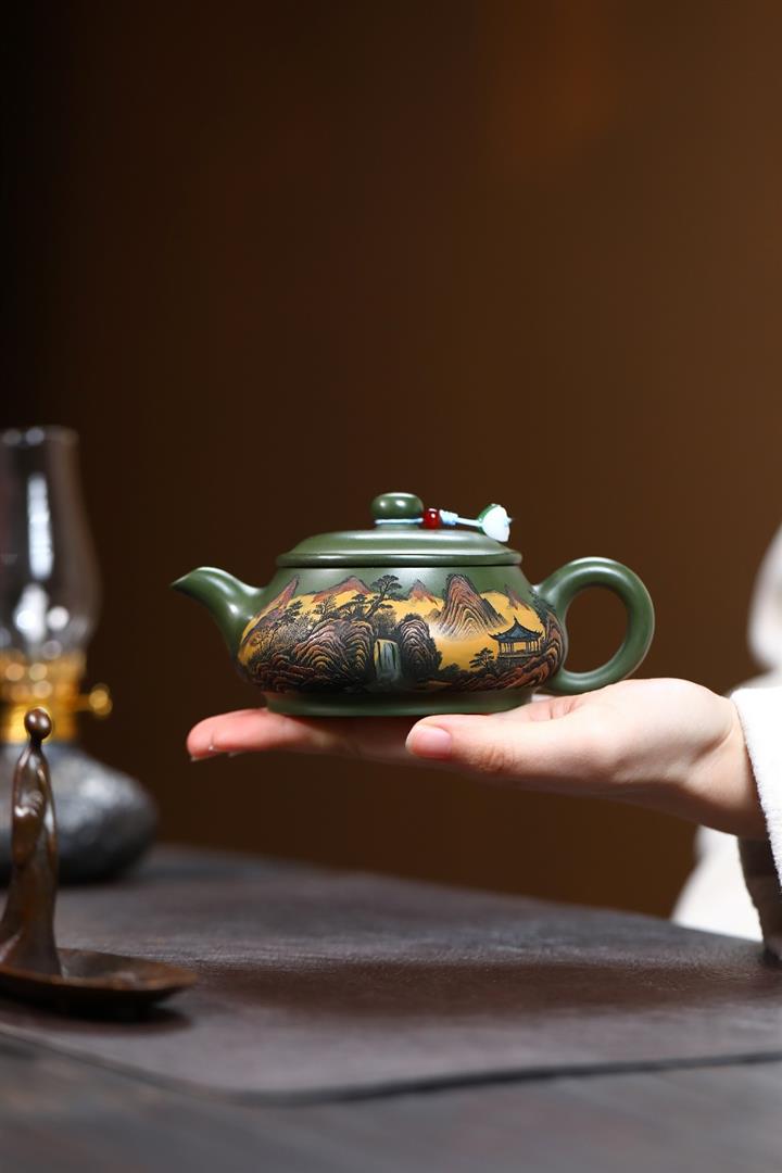 230cc原礦優質綠泥錦繡寒江泡茶壺POT9368