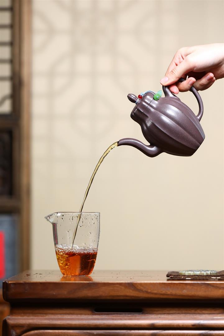【泥料特點】砂土氣重,似淳實農民,日久使用,漸露鋒芒,養成變化,溫潤莊重。紫砂是壹種雙重氣孔結構的多孔性材質,氣孔微細,密度高。用紫砂壺沏茶,不失原味,且香不渙散,得茶之真香真味。紫砂使用越久,壺身色澤越發光亮照人,氣韻溫雅。紫砂壺長久使用器身會因撫摸擦拭,變得越發溫潤光澤。