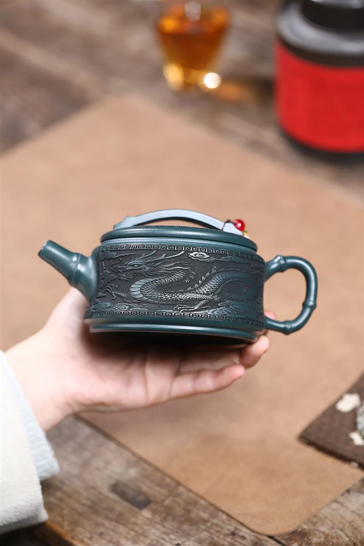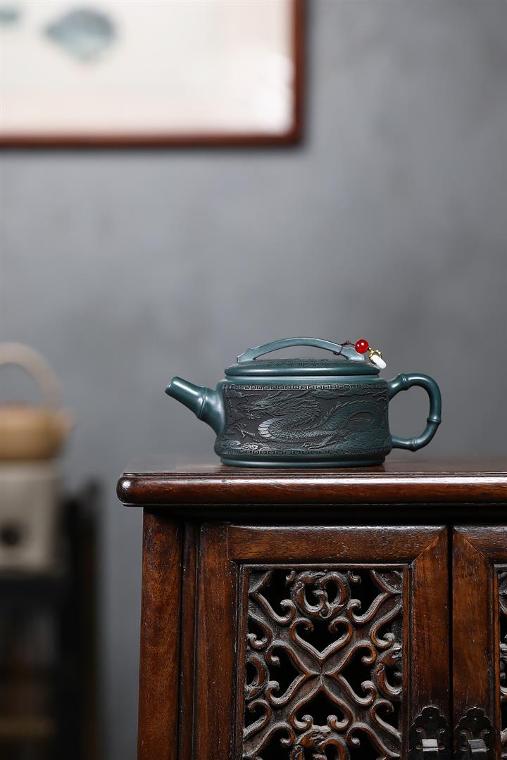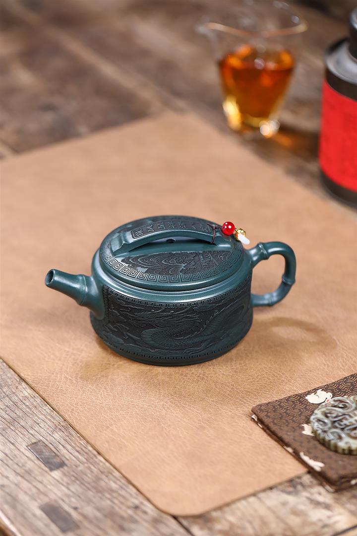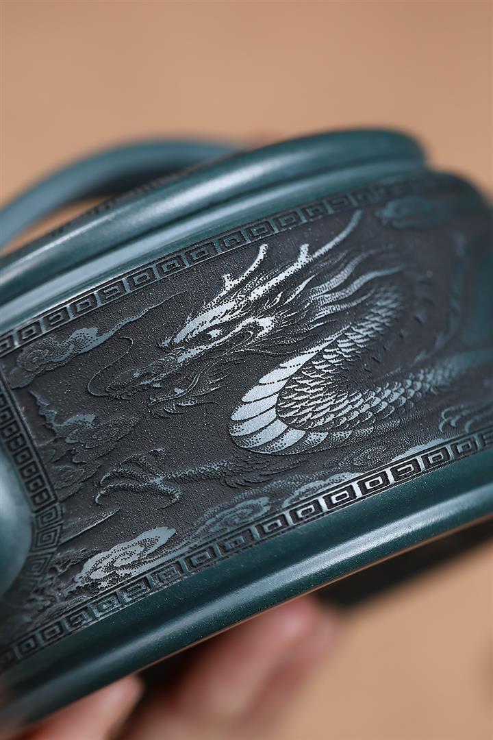 300cc原礦墨綠泥龍鳳呈祥漢瓦茶壺POT9428