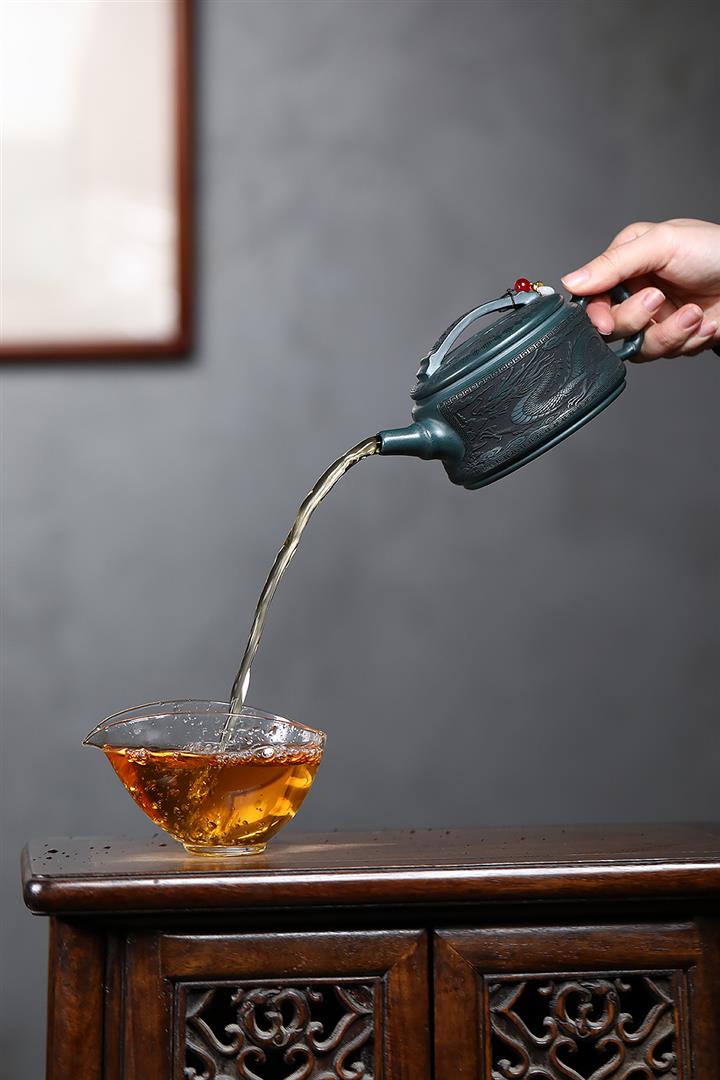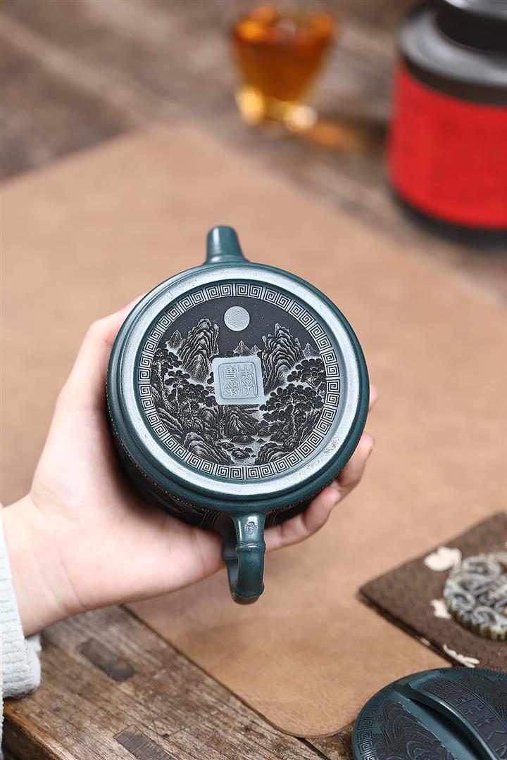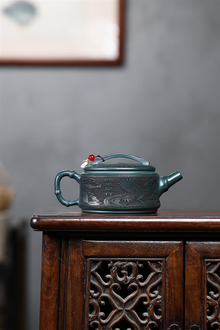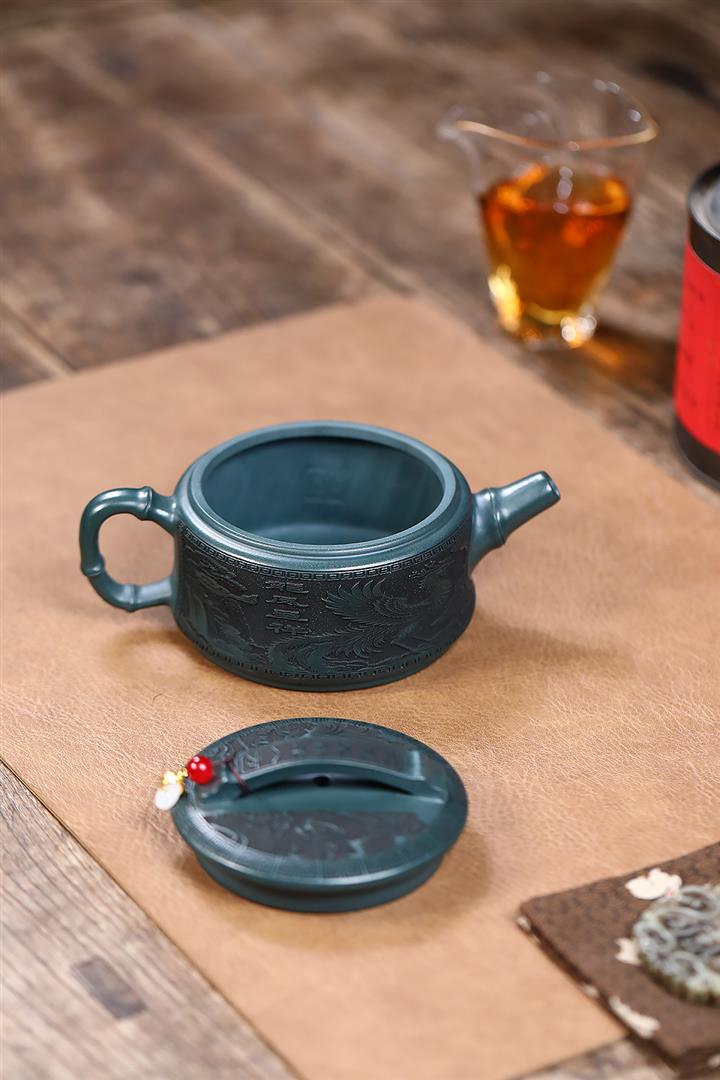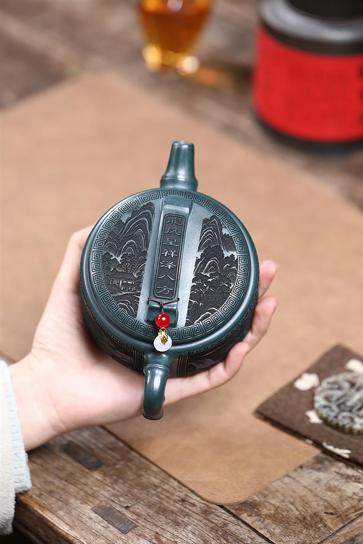 300cc原礦墨綠泥龍鳳呈祥漢瓦茶壺POT9428