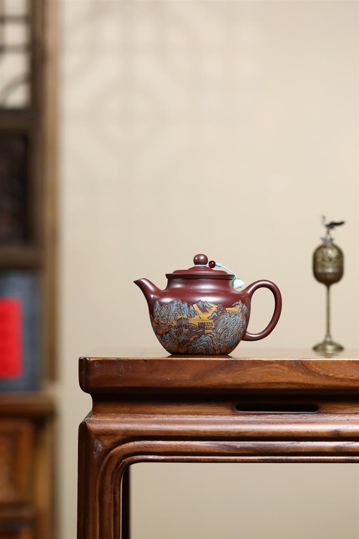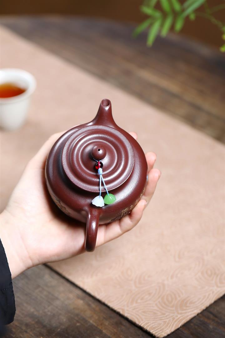 【作品介紹】此款壺形線條流暢,壺把,壺嘴,壺身壹氣呵成栩栩如生,是收藏把玩的好壺,泥料色澤古樸典雅,日久使用,漸露鋒芒,養成變化快,溫潤莊重,用其泡茶,使用的年代久,壺身就溫潤,泡出來的茶湯也就醇郁芳馨。