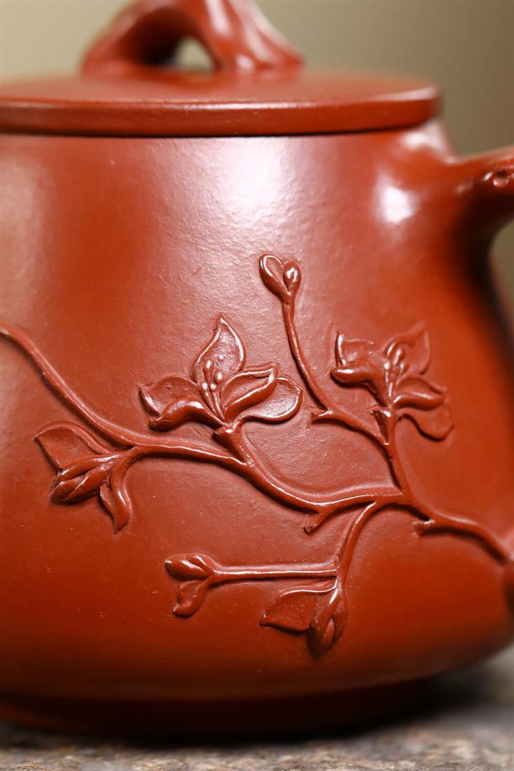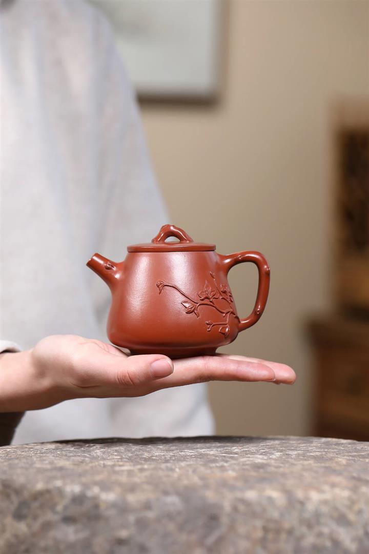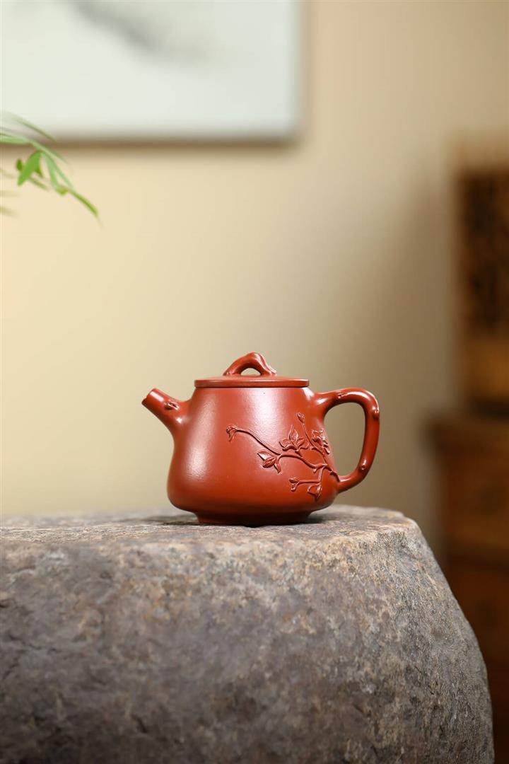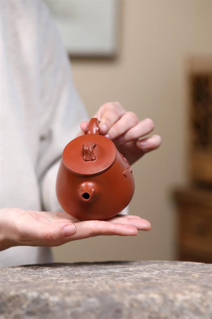 【泥料特點】砂土氣重,似淳實農民,日久使用,漸露鋒芒,養成變化,溫潤莊重。紫砂是壹種雙重氣孔結構的多孔性材質,氣孔微細,密度高。用紫砂壺沏茶,不失原味,且香不渙散,得茶之真香真味。紫砂使用越久,壺身色澤越發光亮照人,氣韻溫雅。紫砂壺長久使用器身會因撫摸擦拭,變得越發溫潤光澤。