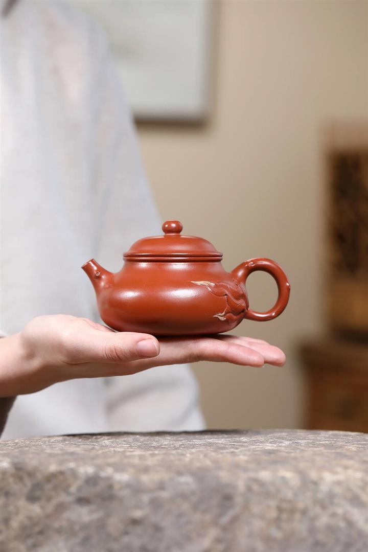 220cc原礦朱泥桃葉容天泡茶壺POT9453