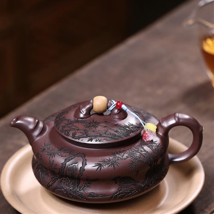 220cc原礦百目紫泥雙線竹鼓泡茶壺POT9454