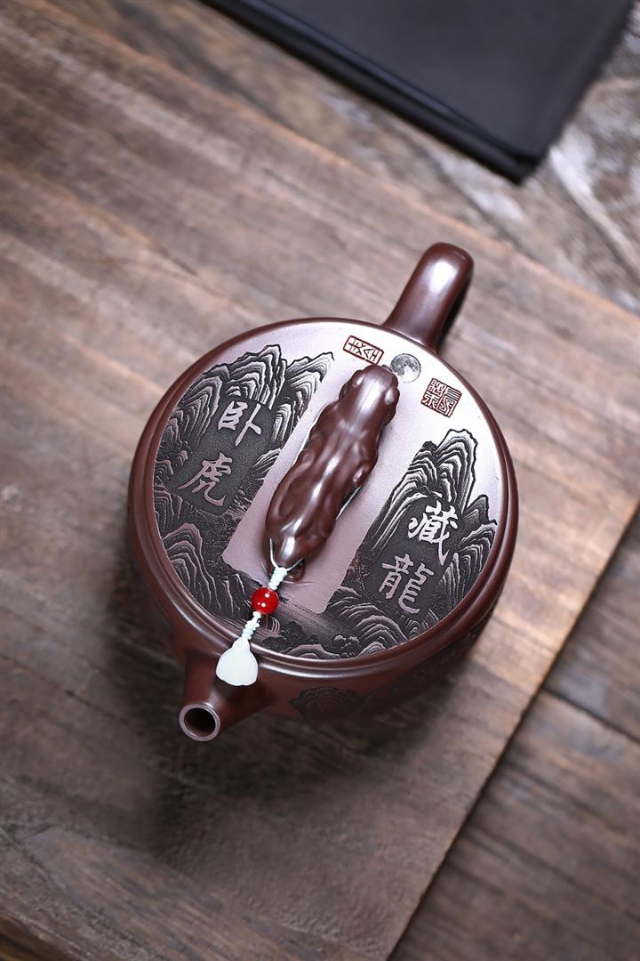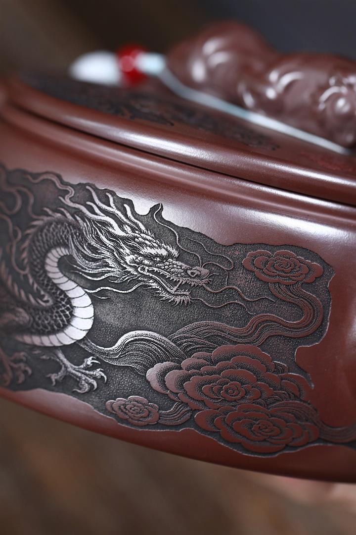 300cc原礦古紅泥周盤魚化龍刻繪茶壺POT8362