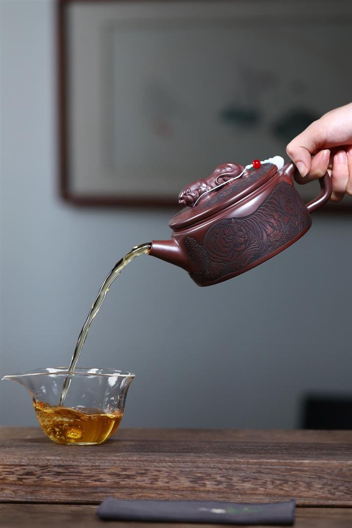 【泥料特點】砂土氣重,似淳實農民,日久使用,漸露鋒芒,養成變化,溫潤莊重。紫砂是壹種雙重氣孔結構的多孔性材質,氣孔微細,密度高。用紫砂壺沏茶,不失原味,且香不渙散,得茶之真香真味。紫砂使用越久,壺身色澤越發光亮照人,氣韻溫雅。紫砂壺長久使用器身會因撫摸擦拭,變得越發溫潤光澤。