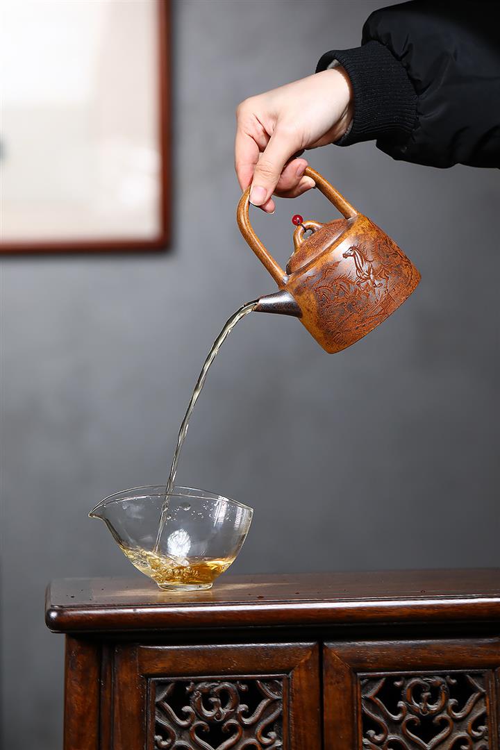【作品介紹】此款壺形線條流暢,壺把,壺嘴,壺身壹氣呵成栩栩如生,是收藏把玩的好壺,泥料色澤古樸典雅,日久使用,漸露鋒芒,養成變化快,溫潤莊重,用其泡茶,使用的年代久,壺身就溫潤,泡出來的茶湯也就醇郁芳馨。