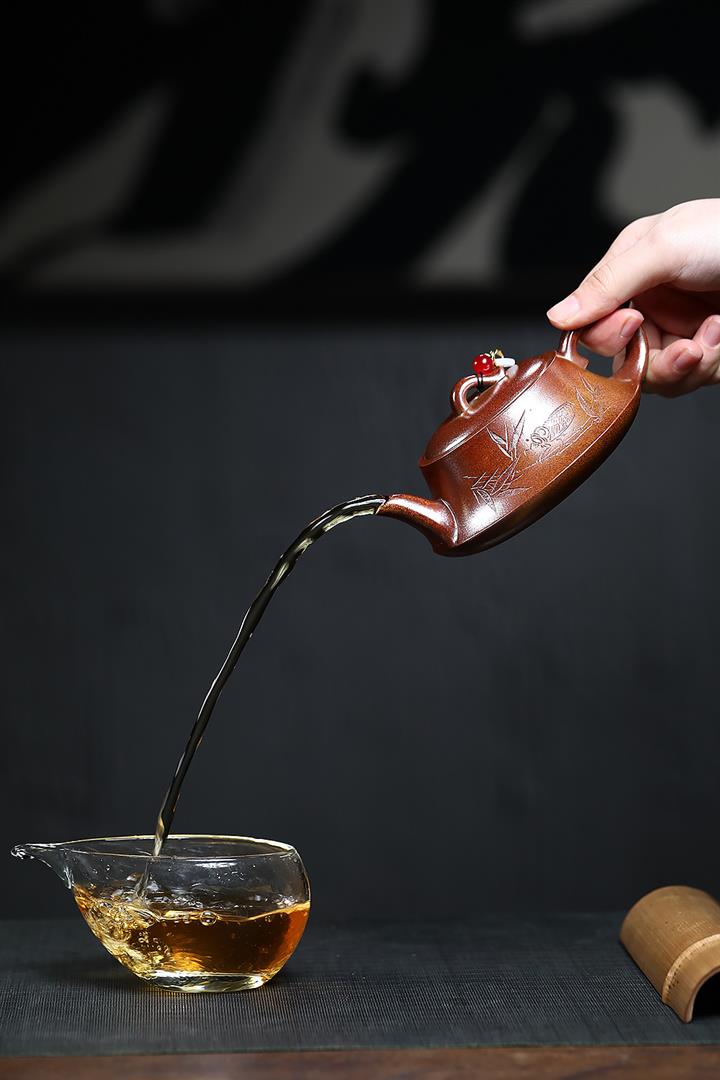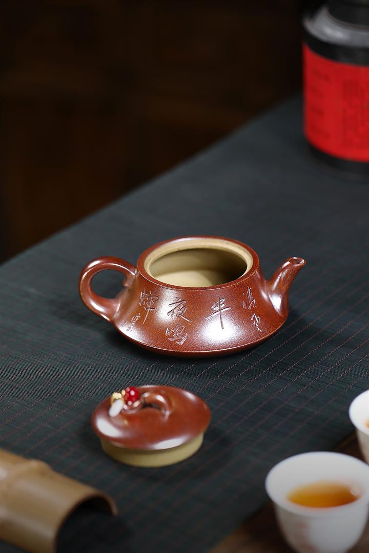 【泥料特點】砂土氣重,似淳實農民,日久使用,漸露鋒芒,養成變化,溫潤莊重。紫砂是壹種雙重氣孔結構的多孔性材質,氣孔微細,密度高。用紫砂壺沏茶,不失原味,且香不渙散,得茶之真香真味。紫砂使用越久,壺身色澤越發光亮照人,氣韻溫雅。紫砂壺長久使用器身會因撫摸擦拭,變得越發溫潤光澤。