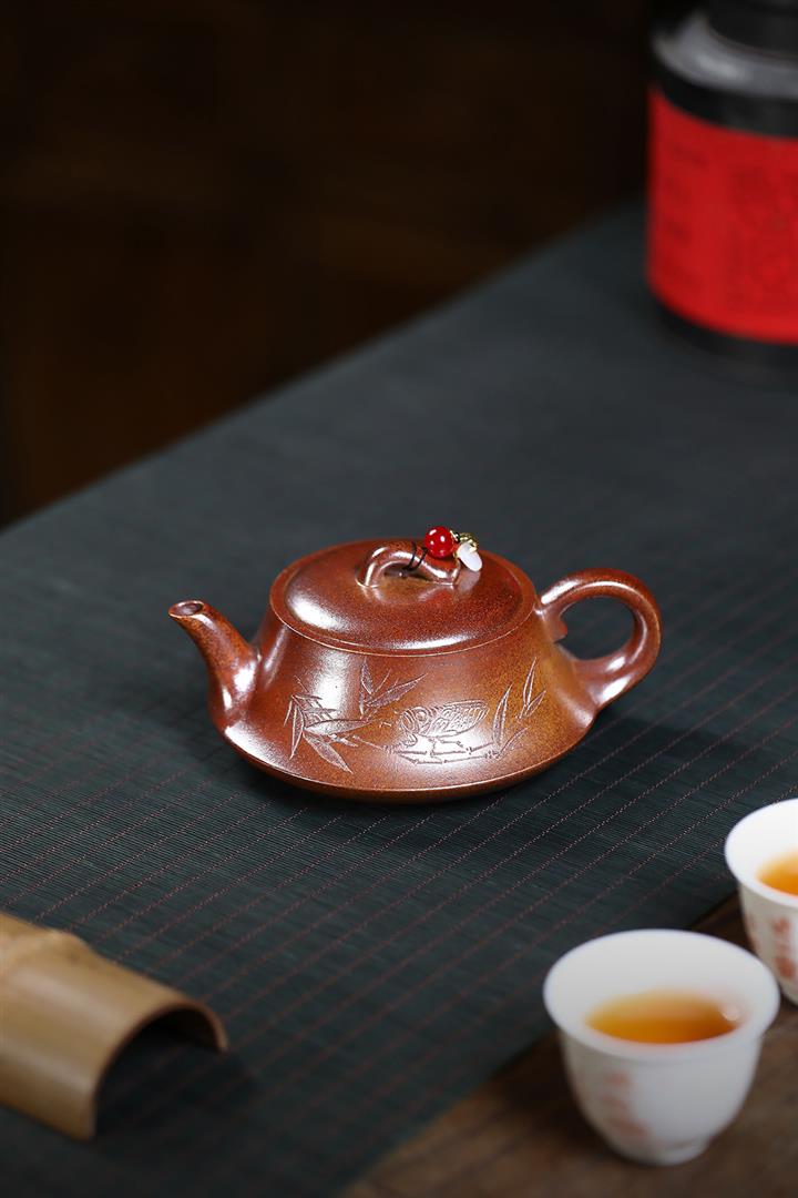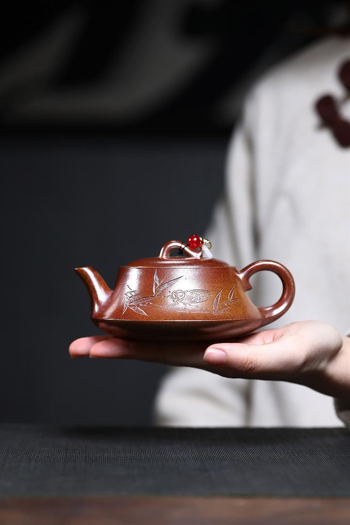【作品介紹】此款壺形線條流暢,壺把,壺嘴,壺身壹氣呵成栩栩如生,是收藏把玩的好壺,泥料色澤古樸典雅,日久使用,漸露鋒芒,養成變化快,溫潤莊重,用其泡茶,使用的年代久,壺身就溫潤,泡出來的茶湯也就醇郁芳馨。