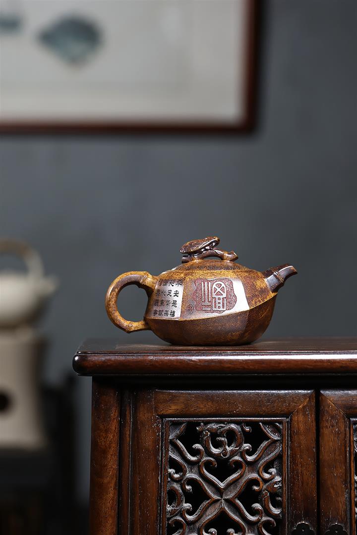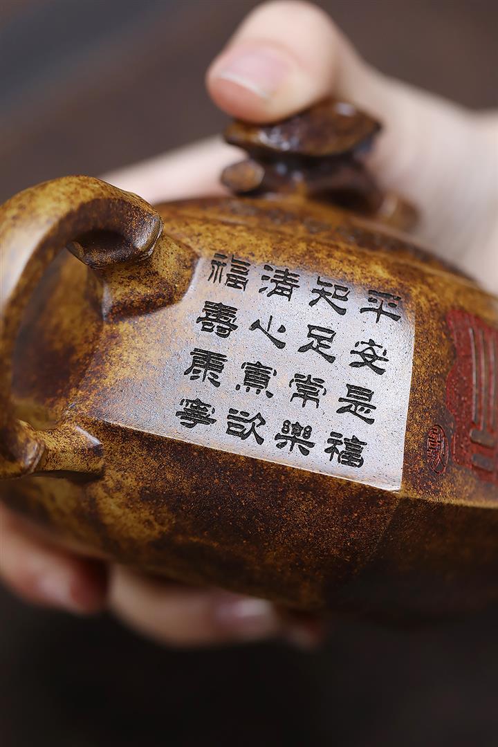 250cc原礦高溫柴燒龍骨金砂大展宏圖文旦茶壺POT9112