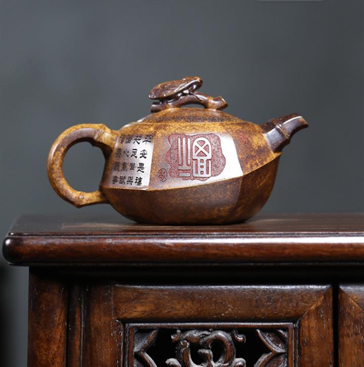 【作品介紹】此款壺形線條流暢,壺把,壺嘴,壺身壹氣呵成栩栩如生,是收藏把玩的好壺,泥料色澤古樸典雅,日久使用,漸露鋒芒,養成變化快,溫潤莊重,用其泡茶,使用的年代久,壺身就溫潤,泡出來的茶湯也就醇郁芳馨。