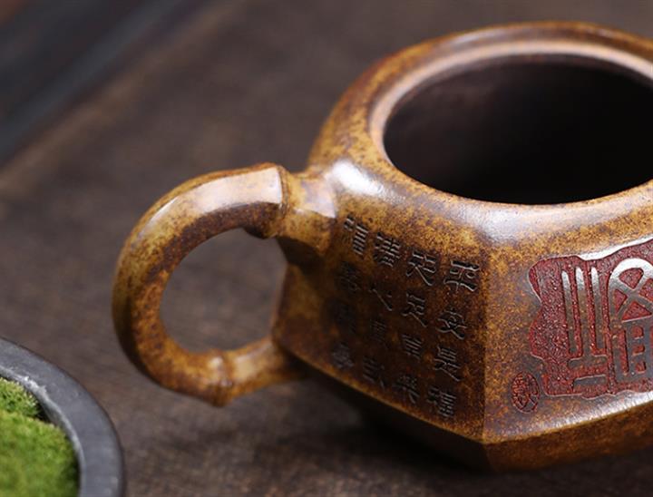 【泥料特點】砂土氣重,似淳實農民,日久使用,漸露鋒芒,養成變化,溫潤莊重。紫砂是壹種雙重氣孔結構的多孔性材質,氣孔微細,密度高。用紫砂壺沏茶,不失原味,且香不渙散,得茶之真香真味。紫砂使用越久,壺身色澤越發光亮照人,氣韻溫雅。紫砂壺長久使用器身會因撫摸擦拭,變得越發溫潤光澤。