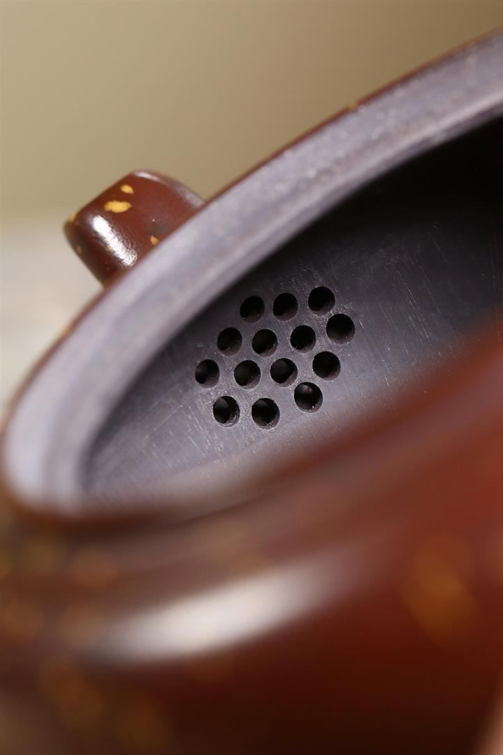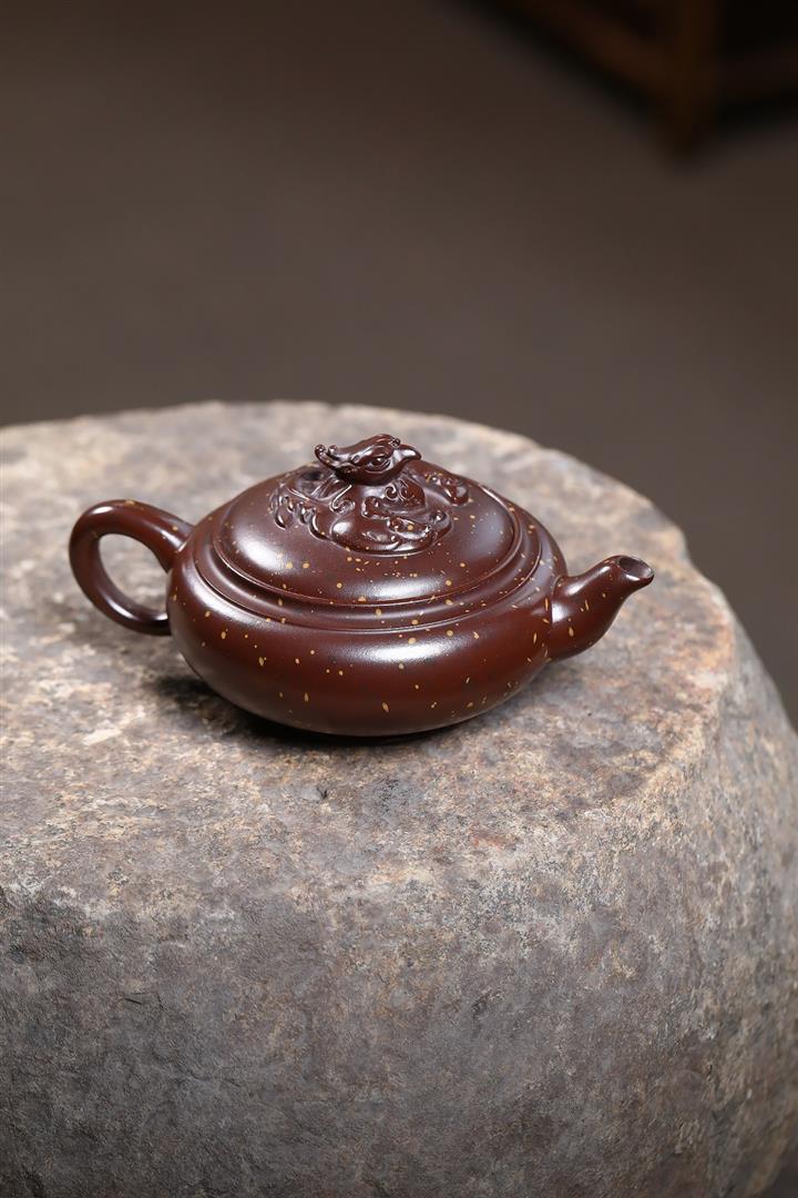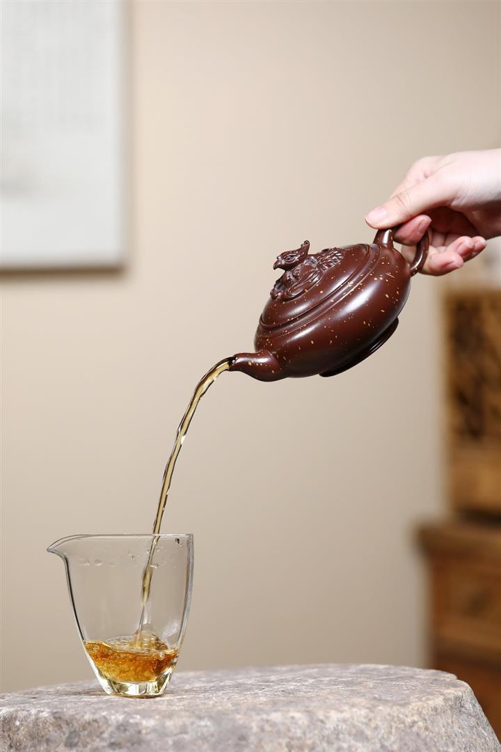 【泥料特點】砂土氣重,似淳實農民,日久使用,漸露鋒芒,養成變化,溫潤莊重。紫砂是壹種雙重氣孔結構的多孔性材質,氣孔微細,密度高。用紫砂壺沏茶,不失原味,且香不渙散,得茶之真香真味。紫砂使用越久,壺身色澤越發光亮照人,氣韻溫雅。紫砂壺長久使用器身會因撫摸擦拭,變得越發溫潤光澤。